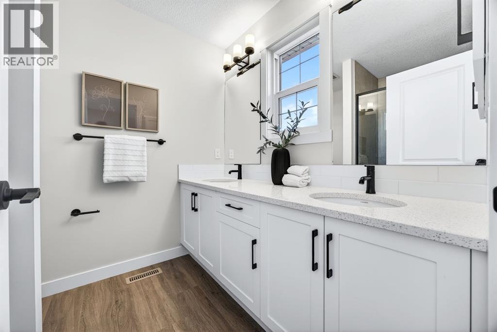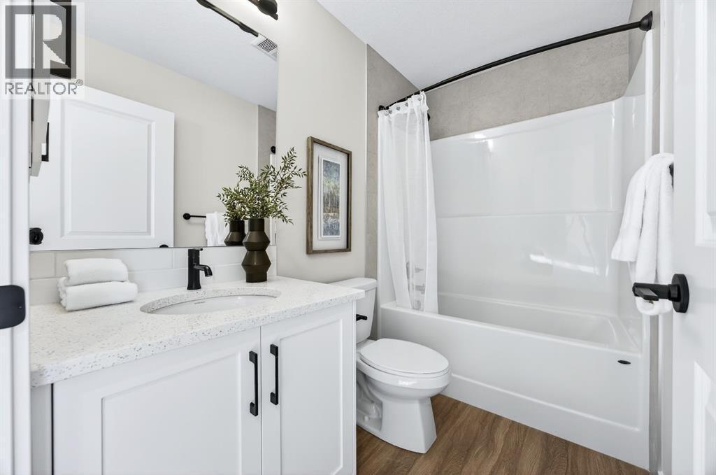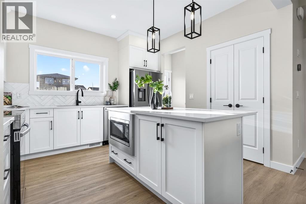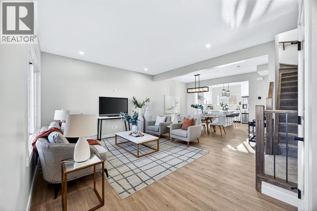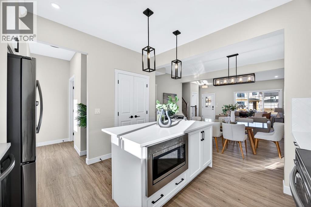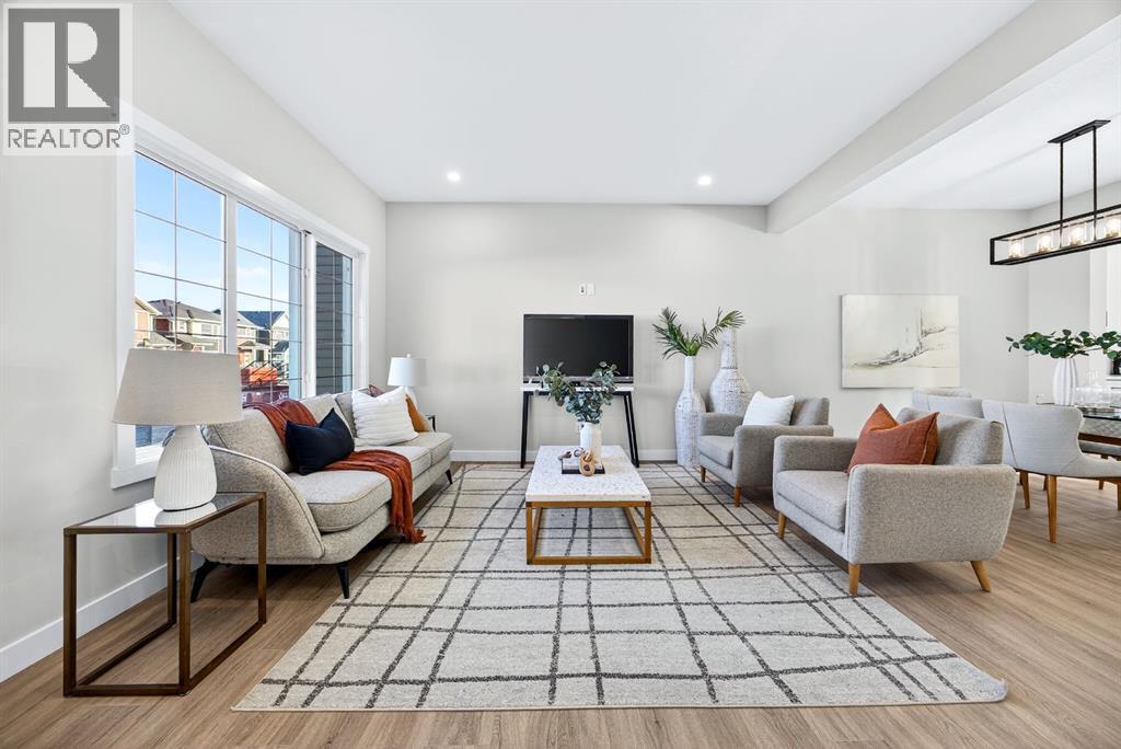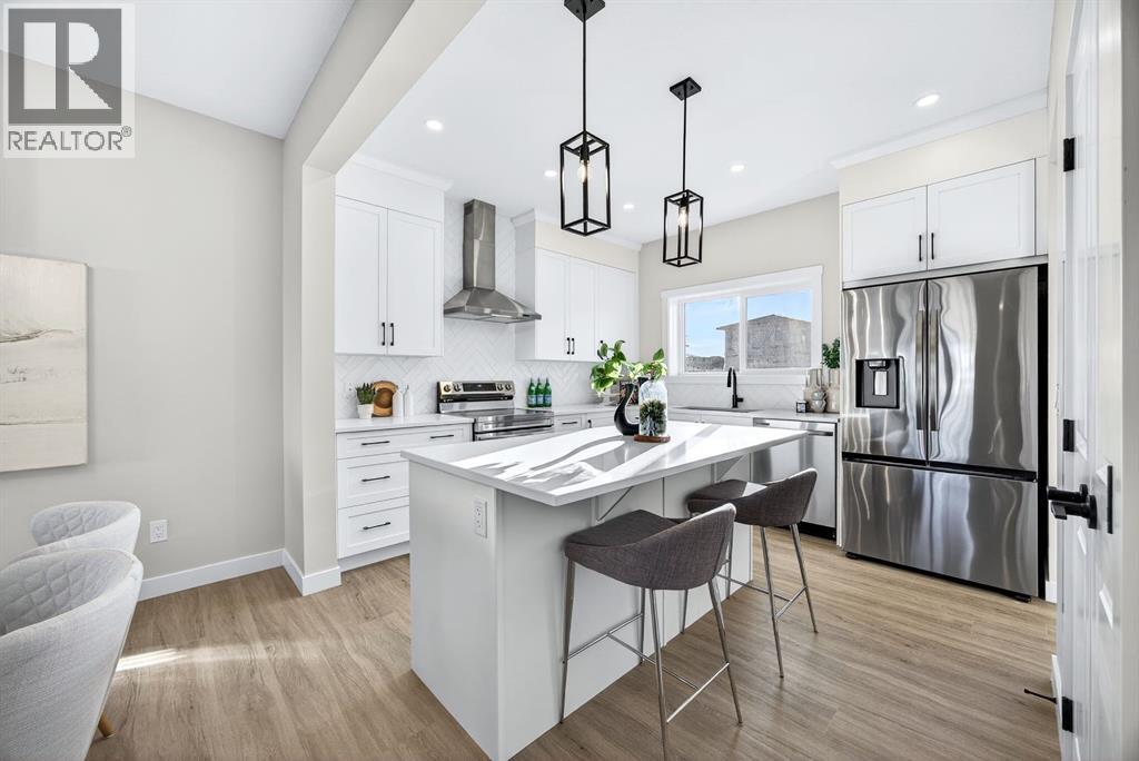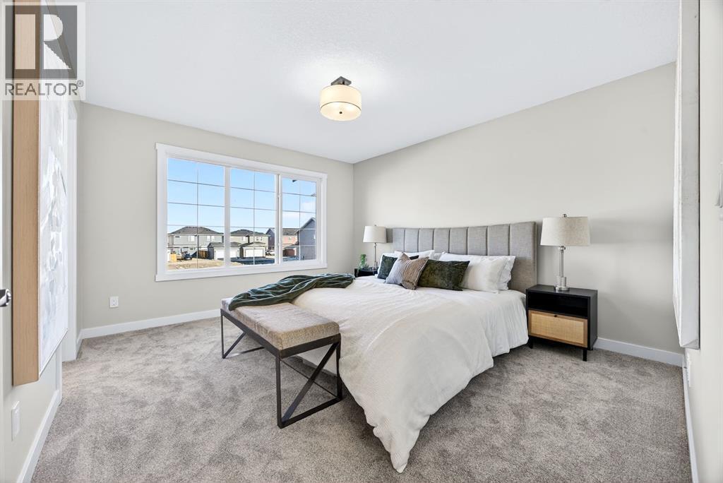 Welcome to this stunning, brand-new Genesis Builders duplex. The "Oscar" offers modern design, functional living, and exceptional future potential with basement suite rough-ins, all complemented by a warm, inviting colour palette that creates a welcoming atmosphere throughout the home. Featuring 3 bedrooms and 2.5 bathrooms, this home is thoughtfully crafted and offers over 1400 sq ft. The main floor showcases a bright, sun-filled floorplan with 9' ceilings and a seamless open-concept layout, connecting the spacious living room, central dining area, and stylish kitchen. The kitchen is beautifully appointed with quartz countertops, two-toned cabinetry, a large central island, and a sleek stainless steel appliance package, complete with a gas line to the range. A convenient powder room completes the main level. Upstairs, the primary suite is a private retreat featuring a generous walk-in closet and a spa-inspired ensuite with his-and-hers sinks and an oversized shower. Two additional well-sized bedrooms, a full bathroom, and convenient upper-floor laundry complete the second level. The unfinished basement offers incredible flexibility with 9' ceilings, a separate SIDE ENTRANCE, and BASEMENT SUITE ROUGH INs, making it ideal for additional living space or future income potential. Outside, the backyard is a blank canvas, ready for your personal touch and offering the opportunity to build your dream garage. Located in the vibrant and family-friendly community of Fireside, this home offers the perfect balance of small-town charm and modern convenience. Fireside is known for its extensive pathway system, parks, playgrounds, and green spaces, ideal for walking, biking, and outdoor enjoyment. Residents love the easy access to schools, shops, restaurants, and everyday amenities, all just minutes away. With quick access to Highway 22 and Highway 1, commuting to Calgary or heading west to the mountains is effortless. *Taxes have not been assessed. Photos are representative of th e same model. This property's colour palette is included in the pictures. RMS has been applied to the builder's construction drawings. (id:6769)