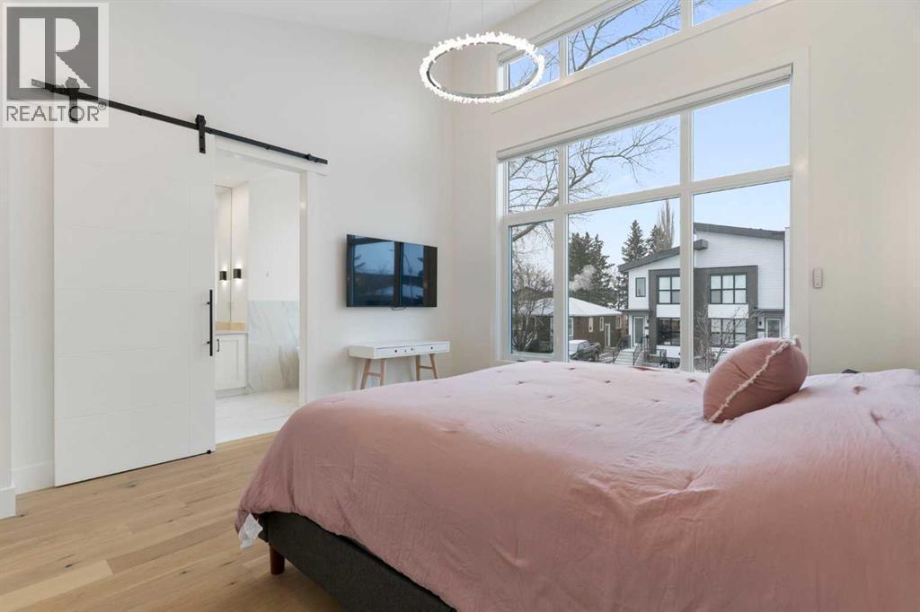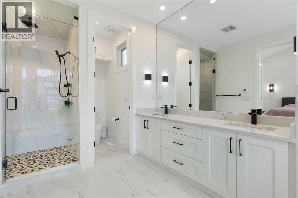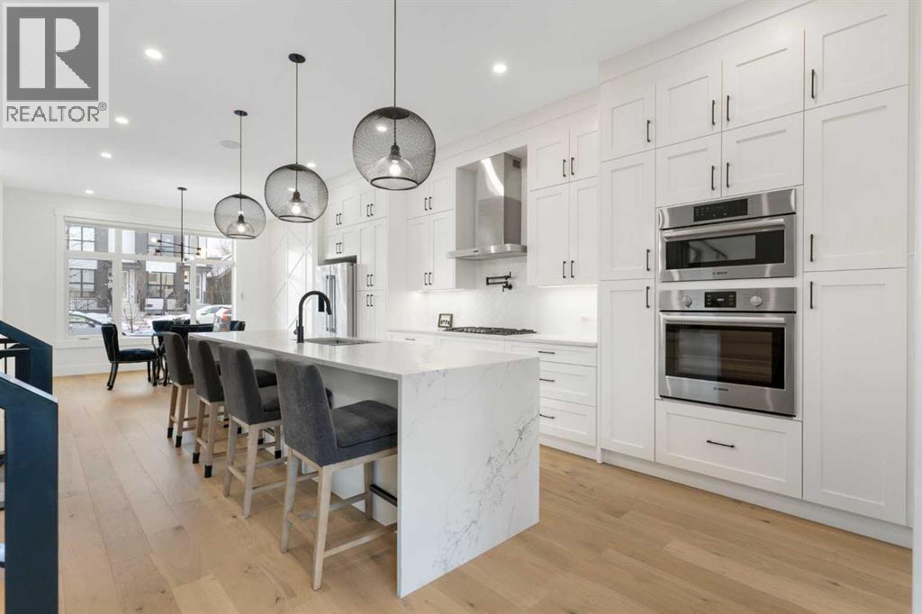 This is the kind of inner-city home that rarely hits the market—just shy of 3,000 sq. ft. of beautifully developed space, and no expense spared on the original build. A newer semi-attached infill with a layout, lot, and upgrade package that truly stands out in today’s market. Tuxedo is one of Calgary’s most desirable inner-city communities—offering the perfect blend of character, convenience, and lifestyle. Centrally located between Fox Hollow Golf Course, Confederation Park, downtown, and the Bow River, it’s easy to see why buyers love this neighbourhood. Sitting on an extra-deep 120’ lot, this property gives you something that’s incredibly hard to find in the inner city: an expansive full-width deck across the entire back of the home, a full double detached garage, and still plenty of green space to enjoy. Inside, the upgrades are extensive. The main floor features 10’ ceilings, oversized doors, and larger windows everywhere they could be added—flooding the home with natural light. Thoughtful finishing work continues throughout with elevated shaker cabinetry to the ceiling, feature walls, and multiple entertainment, bar, and fireplace areas that bring both style and warmth to the home. You’ll also love the functional prep/bar area between the kitchen and back mudroom, plus built-in lockers designed for real life.The kitchen is a true showstopper with a Bosch appliance package, toe-kick and cabinet lighting, a pot filler, herringbone tile backsplash, and a massive 12’ quartz island with waterfall edges. The main living area was made to entertain and flows seamlessly outdoors through an impressive 8’x8’ patio door assembly onto your private deck. Upstairs, the layout continues to impress with 4 bedrooms and 4 bathrooms, a loft-style entertainment area, and a full laundry room with sink. You’ll also find two spacious secondary bedrooms and a stunning primary retreat featuring vaulted ceilings, a wall of windows, a generous walk-in closet, and a beautifully upgraded 5-piece ensuite. Transom windows on the second level and skylights take the natural light to another level and add to the home’s bright, airy feel. Downstairs offers even more space to relax and host, with a full entertainment zone featuring built-ins, a wet bar with black tile backsplash, wine storage, beverage fridge area, sink, plus a full bathroom, an additional bedroom, and a dedicated gym with rubber flooring and floor-to-ceiling mirrors. Simply put, you can’t build this property today for anywhere close to the same price—and even if you could, it wouldn’t be on a 120’ deep lot in a location like this. Priced to sell, don’t wait to book your showing or reach out for more details. And when you live in Tuxedo, you’re not just buying a home—you’re buying one of Calgary’s best inner-city lifestyles. (id:6769)