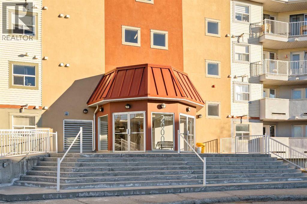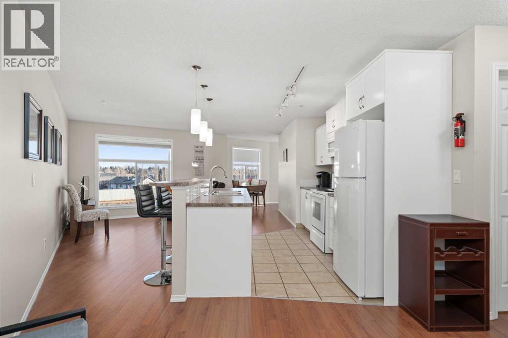 Create the simplified lifestyle of your dreams in this move-in-ready, 912 sq ft, 2-bedroom condo. From the moment you enter, the efficient and functional layout stands out. A spacious entry with coat closet and pantry leads into the kitchen, featuring ample cabinetry and counter space for cooking or ordering in. The central island with raised-bar seating is the heart of the space—perfect for casual meals or conversation. The open-concept living area offers flexibility for dining, lounging, reading, or a home office, all enhanced by large windows that flood the space with natural light and showcase expansive views. Step outside onto your private balcony—ideal for a bistro table and chairs to enjoy the day. A versatile flex room easily serves as a second bedroom, office, gym, or tv/entertainment space. Nearby is a 3-piece bathroom with convenient in-suite laundry. Tucked away for privacy, the spacious primary suite features an oversized bedroom with room for a king-sized bed, a large walk-in closet with additional storage, a second two-door closet with shelving, and a private 4-piece ensuite. This condo offers exceptional storage throughout, making it easy to keep an organized home. Fresh paint and new top-down/bottom-up window coverings complete the interior. Additional features include in-floor radiant heating and hot water on demand. The unit includes one titled heated underground parking stall and has one outdoor stall, plus ample visitor parking. Located in a well-managed, pet-friendly complex with a well-funded reserve fund. The condo fees include heat, water, snow removal, landscaping, and professional management. Conveniently close to shopping, restaurants, schools, transit, and major routes. Enjoy nearby amenities such as Bert Church Live Theatre, Genesis Place, Nose Creek Park, walking trails, and community activities. Call your favorite REALTOR® to book your showing. (id:6769)