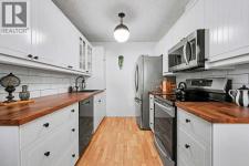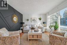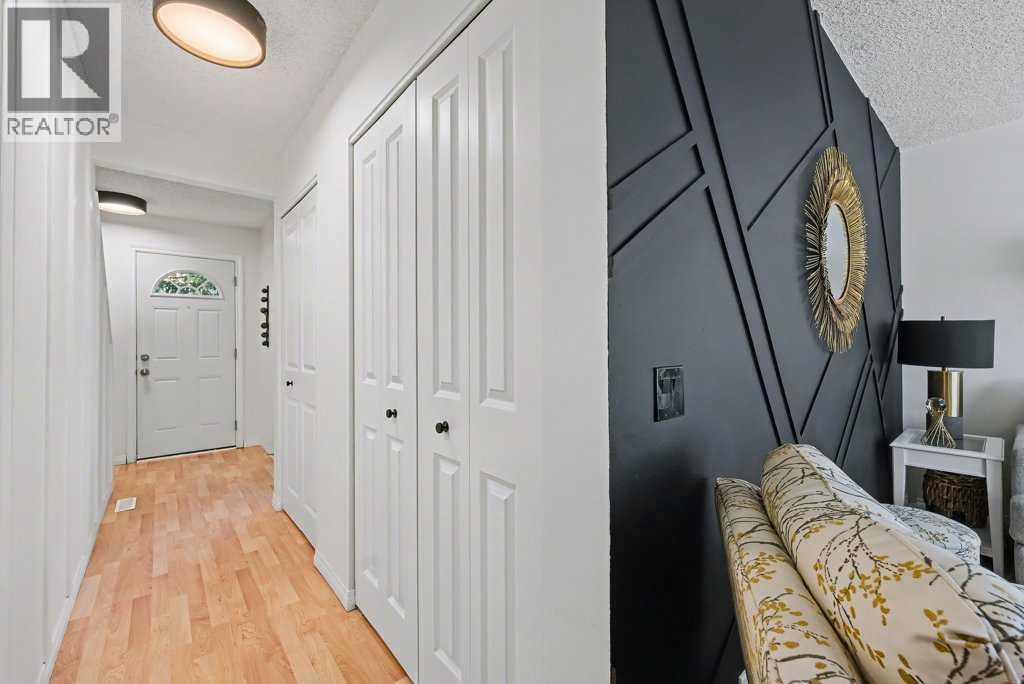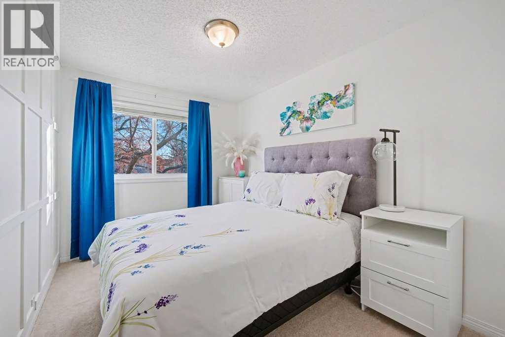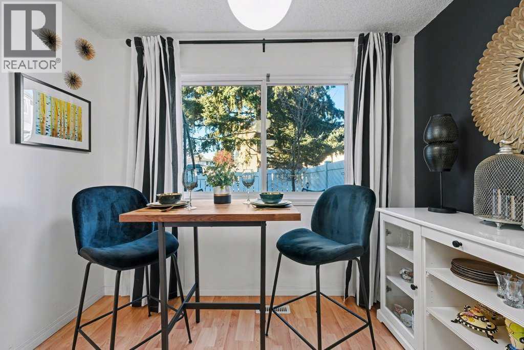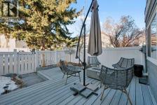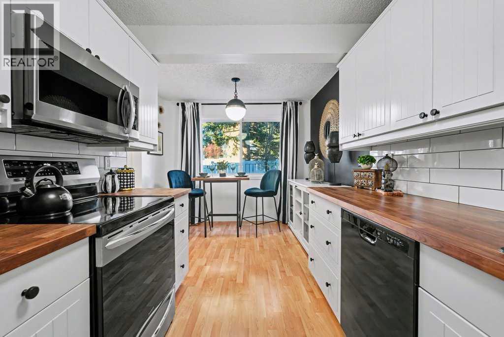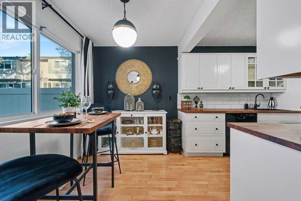 What a beauty! Perfect location on the back side of the complex in a quiet corner, steps away from Fish Creek Park! Go for long walks immersed in nature along paved pathways! This complex is incredibly well managed with strong reserve fund & low monthly condo fees that even include water & gas! The unit has been beautifully updated featuring modern design touches. Gleaming oak hardwood floors, newer windows & hot water tank. Re-designed kitchen features Black Walnut butcher block counter tops, loads of white cabinets & new appliances. Check out the induction stove! Enjoy your breakfast at the dining nook overlooking the beautiful back yard & watch the squirrels playing in the mature trees behind! 3 bedrooms & a fully updated bathroom upstairs. The Primary bedroom has room for a full furniture suite, features a large closet & nook area perfect for a computer or makeup desk. More space awaits you in the basement where the laundry machines & mechanicals are located. Look for the “secret door” that leads to a whimsical room professionally painted by a movie set designer. The yard has been transformed into a private oasis in nature. Enjoy low maintenance vinyl decking & stone bordered raised gardens! Walk out the back gate directly to your parking space. You will love getting to know the friendly, quiet, long term neighbours. (id:6769)