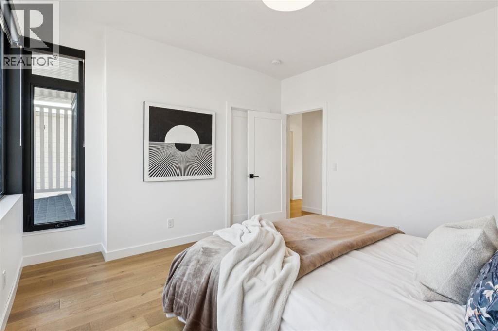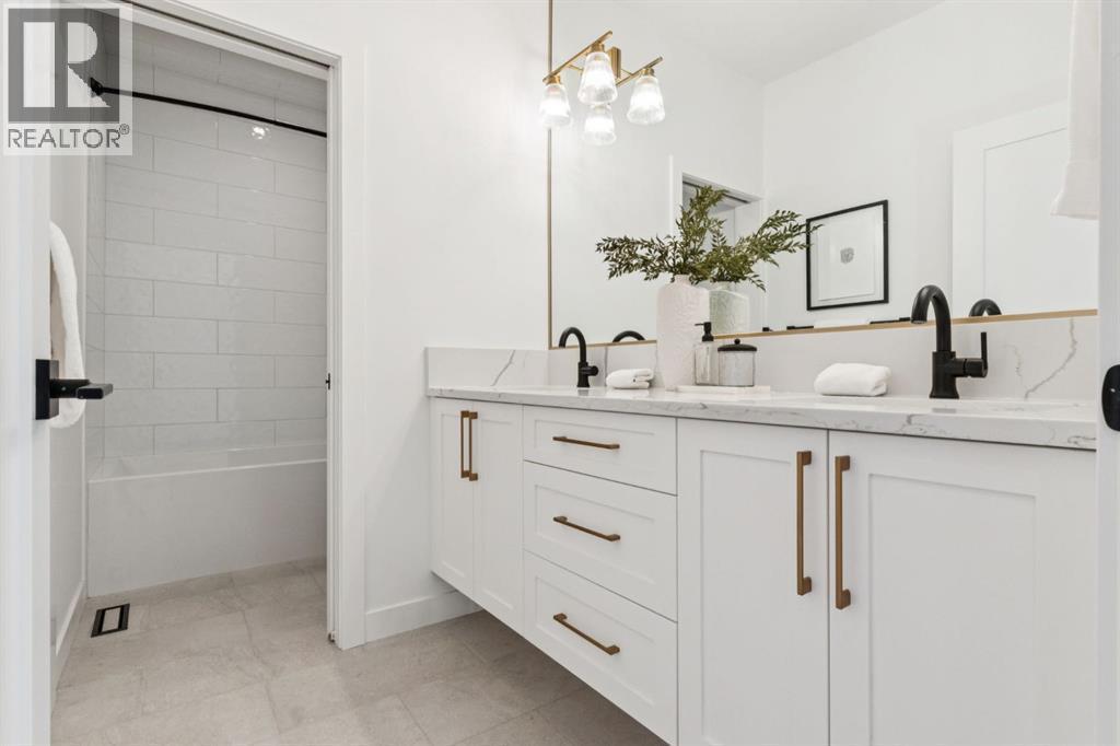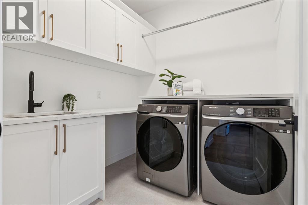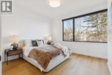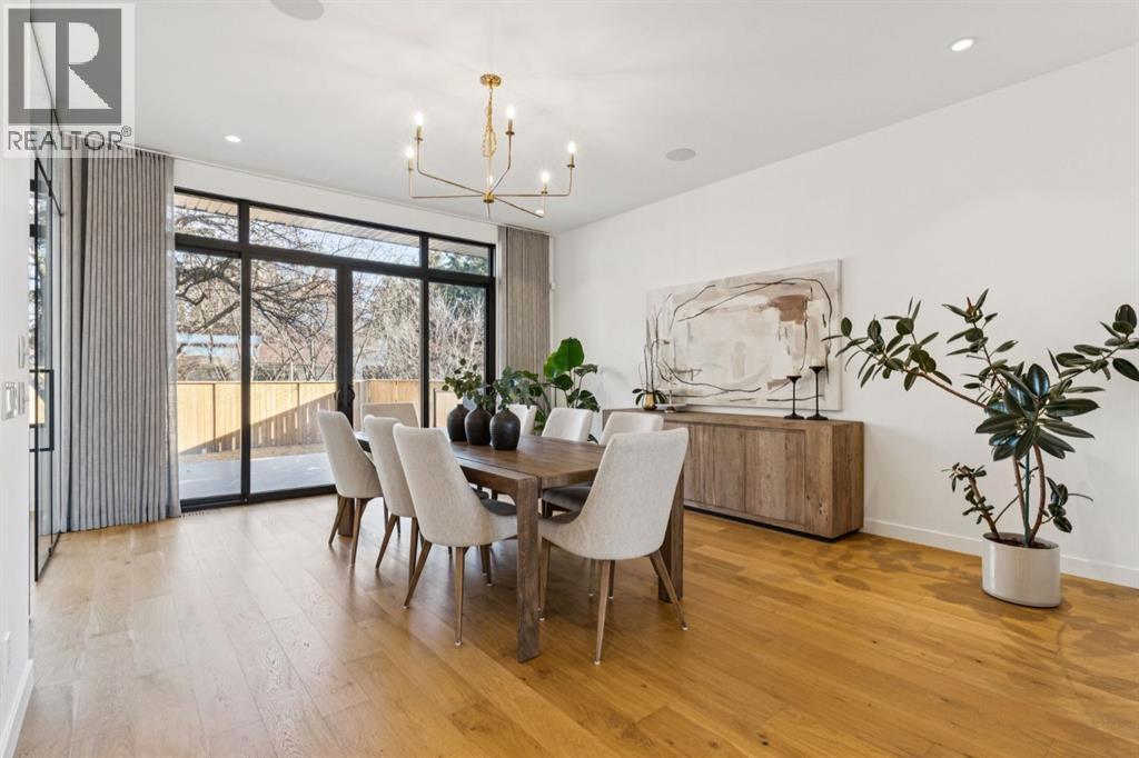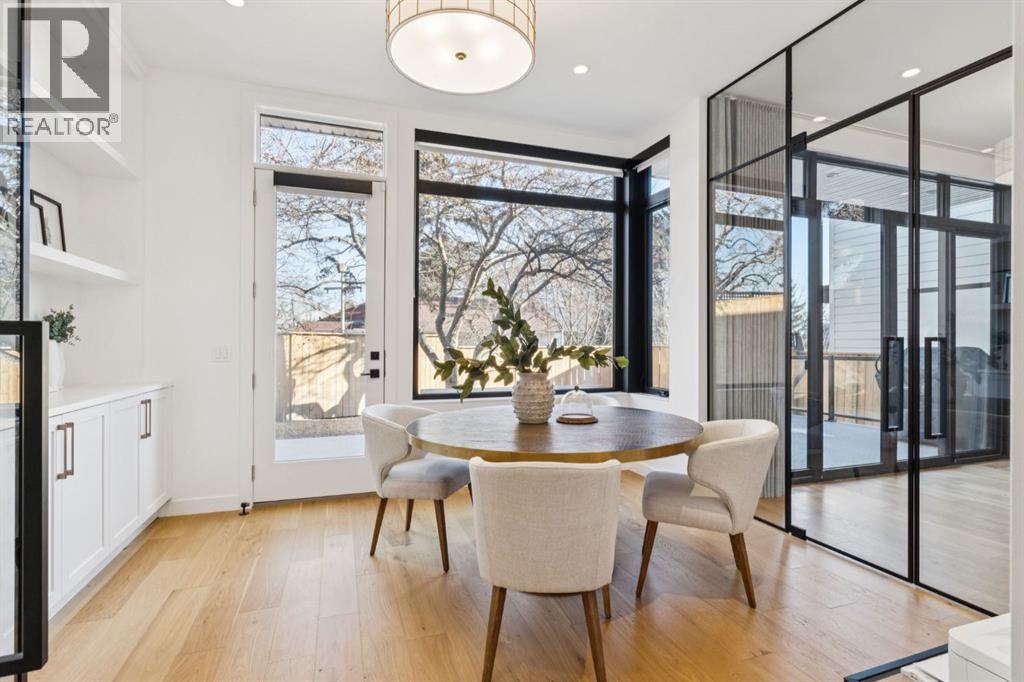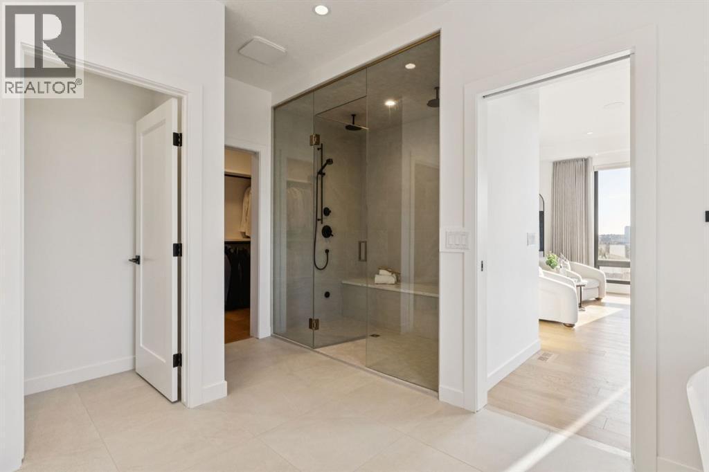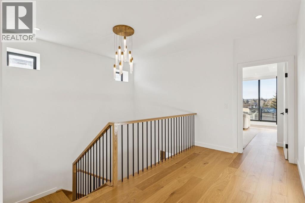 An extraordinary hillside sanctuary awaits in the exclusive inner-city community of Briar HiIl. Ideally located on a peaceful street, this fabulous home offers over 4,600 square feet of contemporary living space and sweeping views of the city skyline and the Rocky Mountains. Sunlight streams through floor-to-ceiling windows, filling the open main floor all day with natural light. A heated porcelain-tiled foyer, 10 ft. ceilings, and wide-plank white oak floors throughout provide warmth and sophistication. Relax by the modern gas fireplace on quiet winter evenings with a book or connect with friends and family on the deck.. The chef’s dream kitchen features a large quartz-topped island with cabinetry on both sides, ideal for meal prep and casual dining. Premium Italian-designed Fulgor Milano appliances—including a professional 6-burner gas stove, an integrated warming drawer, and a combi speed oven—make entertaining seamless. The butler’s pantry adds functionality with an additional counter space, storage, and a wine/beverage fridge for extra convenience. Host memorable dinners in the expansive dining room, with sliding doors to a private back patio and backyard, which is perfect for BBQ's and al fresco dining in warmer months. The private office, accessible from the kitchen and backyard, is filled with morning light and offers a tranquil, creative workspace. Upstairs, the serene primary suite impresses with a 10-foot tray ceiling and a second balcony with west-facing mountain views. A cozy seating area is perfect for morning coffee, watching the city wake, and enjoying the incredible, vibrant Calgary sunsets. The luxurious ensuite has a massive double steam shower with a bench, heated floors, oversized soaker tub, dual vanities, and a large walk-in closet. Begin and end your day with relaxation and rejuvenation in the wellness room, featuring an authentic Finnish sauna with a Bluetooth sound system. Two additional bedrooms with oversized windows, spectacular city vi ews, and walk-in closets provide comfort for family or guests. A convenient laundry room with sink and storage completes the upper level. The lower level includes a spacious rec room with a wet bar, a beverage fridge, and flex space for game tables or workouts. The entertainment area is ideal for movie nights or big game day parties. The fourth bedroom and full bath provide guests with privacy and ease. Two massive storage rooms and a large mudroom lead to the oversized 698 sq. ft. heated double garage, with even more storage or a spot for a workshop. Additional highlights include a Sonos audio system, Hunter Douglas electronic window coverings, Lutron integrative lighting, hydronic in-floor heating in the basement, and central air conditioning. Only 10 minutes from downtown, a 20-minute walk to shops and restaurants in Kensington, and steps from walking paths on the hillside. Experience luxury, comfort, and breathtaking surroundings—this is the quintessential urban lifestyle you’ve been waiting for! (id:6769)