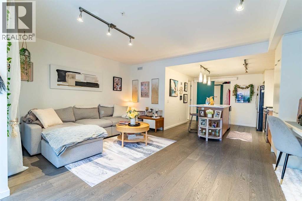 Welcome to The Block, featuring some of the most desirable walkout brownstone-style one-bedroom units in the building—rarely available. Located on a quiet street just off 17th Avenue, this pet-friendly condo offers the ideal balance of inner-city convenience and peaceful living. The bright, open-concept layout is filled with natural morning sunlight and features hardwood flooring throughout (no carpet), flat ceilings, upgraded pendant lighting, custom built-in millwork shelving, a 10mm glass shower door, and a recently upgraded LG washer and dryer. In-floor heating provides year-round comfort with no furnace or hot water tank to maintain.Enjoy your private east-facing walkout patio, shaded by a mature oak tree. The professionally designed central courtyard offers seating, patio lighting, and a strong sense of community—ideal for summer evenings and social gatherings. Designed for a true lock-and-leave lifestyle, condo fees include everything except electricity. The unit includes a titled underground heated parking stall with storage. Unbeatable location steps to Urban Fare, Made by Marcus, Mik Coffee & Art, Canadian Tire, bike paths, parks, the river, and all the amenities of 17th Avenue. A rare opportunity to own a low-maintenance home in one of Calgary’s most walkable inner-city communities. Book your showing today ! (id:6769)
