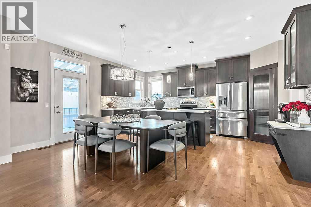 Beautiful family home on a QUIET CHILD FRIENDLY STREET. This four bedroom, two storey home offers over 3,100 sq. ft. of developed living space on a large pie shaped lot. The open concept main floor features a spacious kitchen with upgraded appliances, abundant cabinetry, pantry and hardwood flooring throughout. The living room includes a gas fireplace and large windows overlooking the expansive backyard. A functional mudroom with built-in bench adds everyday convenience. Upstairs, enjoy a vaulted ceiling bonus room, a king sized primary bedroom with ensuite, generously sized secondary bedrooms and second floor laundry with built-in cabinetry. The FULLY FINISHED BASEMENT includes a bedroom, full bathroom, and kitchenette (no stove/oven), ideal for guests or extended family. The extra large backyard offers a pergola covered deck perfect for outdoor living and entertaining. Additional features include central air conditioning, outdoor storage shed and a programmable hot water recirculation system. WALKING DISTANCE TO EAST LAKE SCHOOL (K-9). An exceptional home for growing families. (id:6769)