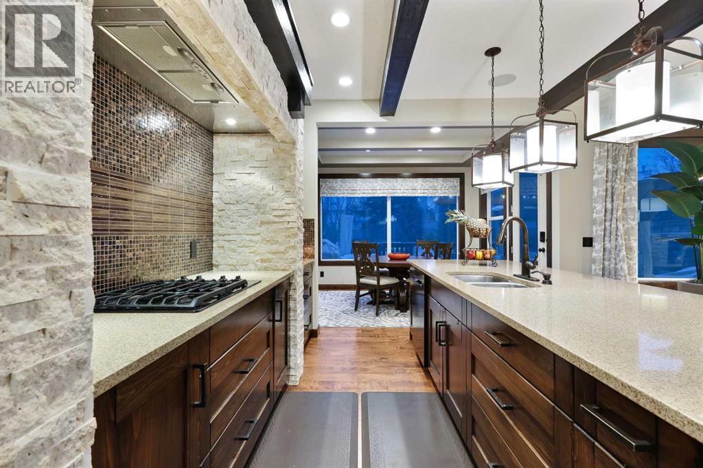 Situated in the prestigious river community of Quarry Park, this exceptionally upgraded detached residence offers a rare blend of refined luxury, intelligent automation, and meaningful infrastructure investment—creating a truly turnkey opportunity in one of Calgary’s most sought-after locations. From the moment you arrive, the home makes a statement. A $30K extended exposed-aggregate and stamped-concrete driveway (2024) provides three-car parking and a front-yard patio, framed by maintenance-free front landscaping(2024). The fully landscaped backyard (2018) features patios, walkways, greenscapes, and sod replacement, all supported by a full irrigation system and enhanced by Kichler outdoor lighting (2024). BriteHouse permanent full-perimeter lighting (2025) adds year-round curb appeal and convenience. Outdoor living is elevated with a custom cedar deck and pergola, complete with privacy screens, integrated lighting, and a natural gas fireplace mortared in place. The chef-inspired kitchen blends warmth, craftsmanship, and function with rich cabinetry, stone detailing, exposed beams, and an expansive island with seating. A walk-through pantry adds exceptional storage and seamless flow, keeping the main kitchen beautifully organized. The large bonus room provides the perfect family space, while the upper-floor recessed balcony offers an elegant retreat to enjoy a glass of wine while watching the sunset. The fully finished, insulated double attached garage features in-floor radiant heating powered by the tankless hot water system, MotoFloor garage tiles, full-length shelving, and impressive vertical storage—delivering year-round comfort and exceptional functionality. Inside, architectural details and premium finishes continue with 9’ ceilings and 8’ doors, vaulted and beamed elements, and birch hardwood flooring throughout the main floor (2021). Custom Calgary Window Fashions drapery and valances (2022), custom laundry cabinetry (2021), and Spectra Light window film—tin ted in the bonus room and frosted on the main floor (2020)—add tailored sophistication, privacy, and comfort. Extensive mechanical upgrades provide peace of mind, including flood-proofing measures suitable for flood-fringe areas, a suspended furnace, sump pump, and a tankless hot water heater supplying both domestic hot water and the garage’s radiant floor heating. Notably, no homes in Quarry Park sustained water damage during the 2013 floods. The home is fully integrated with Control4 smart-home automation, professionally installed and supported by smartSPACE Solutions, with optional ADT/Telus security integration. Steps from river pathways, parks, schools, and shopping, this meticulously upgraded residence delivers an exceptional luxury lifestyle in one of Calgary’s most desirable communities. (id:6769)
