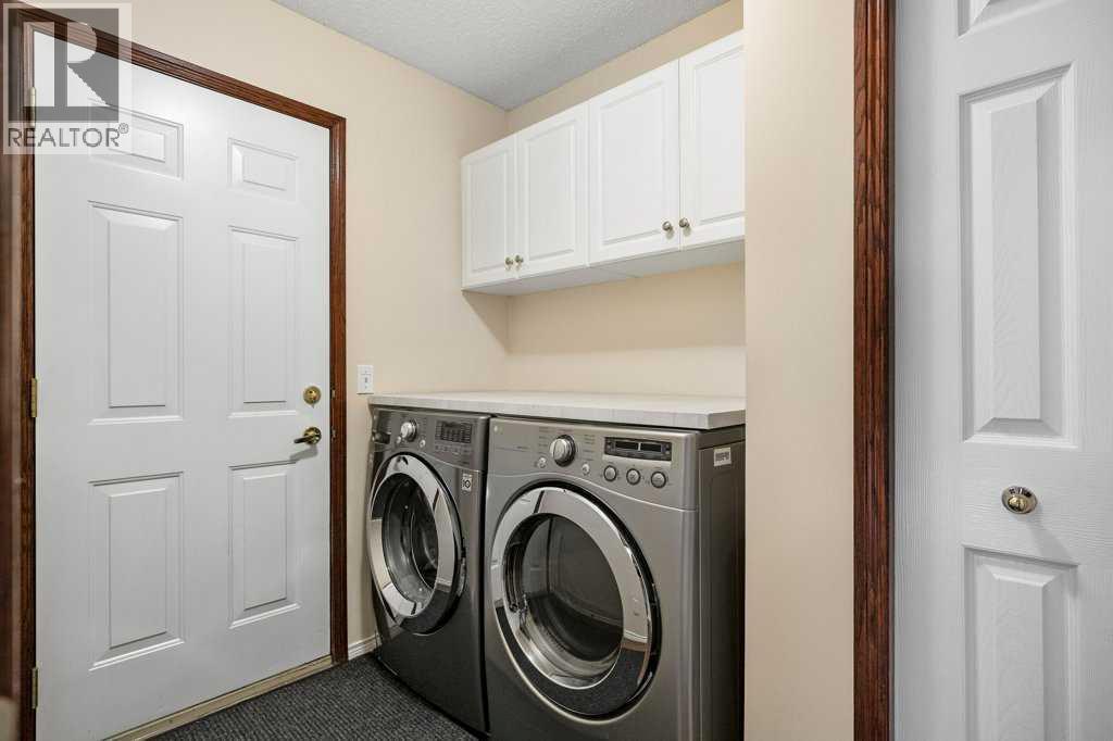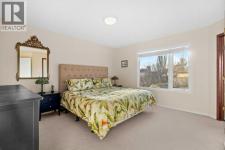 This home is simply impeccable and proudly offered by its original owners. Thoughtfully maintained and updated, the property features a vinyl and stone front exterior, with Poly B professionally removed, central air conditioning, and a freshly painted exterior. Built by Jager Homes in the desirable Birchwood model, the home showcases quality craftsmanship throughout.. Upon entry, you are welcomed by an open-to-above front foyer accented by hardwood flooring. A front-facing flex room with carpet offers versatility as a home office or sitting room and leads into the formal dining area, complete with pocket French doors. The spacious kitchen and nook were beautifully renovated in 2008, featuring extended-height cabinetry, with solid wood cabinet doors, granite countertops, a full appliance package, pantry cabinet, and a diagonal tiled backsplash. The bright nook is surrounded by windows with shutters and includes a garden door with phantom screen, opening to a massive and private south-facing backyard. This exceptional outdoor space features mature grapevines and lavender, a lower patio, a five-year-old fence, and an expansive lawn ideal for children and pets. Back inside, the family room enjoys peaceful backyard views and is anchored by a gas fireplace with tiled surround. The main level is completed by a 2-piece bathroom with granite storage vanity, a functional laundry room with coat closet and additional upper cabinetry, and direct access to the double attached garage, which is insulated, drywalled, painted, and well finished. Upstairs, carpet and railing lead to a well-laid-out upper level offering four bedrooms and two full bathrooms. The front bedroom features an IKEA-built-in closet system plus an additional closet, while two additional bedrooms are thoughtfully positioned with a 4-piece bathroom in between, complete with a granite storage vanity. The primary bedroom, located at the rear of the home, enjoys sunny south-facing views and comfortably accommodates large furniture. It includes a walk-in closet and a renovated 4-piece ensuite with a Jacuzzi tub, large tiled standalone shower, and granite storage vanity. Newer Kohler toilets with soft-close lids are installed throughout the home. The professionally developed basement (with permits) offers flexible space to suit a variety of family needs. Highlights include knockdown ceilings, under-stair storage, a side utility/storage room with workshop area and rough-in for a sump pump, and a large rec room with new carpet, fresh paint, and updated lighting. The layout allows for the addition of a fifth bedroom without compromising living space. Completing the lower level is a utility room with a newer hot water tank and water softener, linen closet, and a 4-piece bathroom with tiled tub and surround and storage vanity. All of this is ideally located steps from river and ridge pathways, green space, local shopping and services, and Eagle Quest Golf Course, with quick access to Deerfoot trail! (id:6769)