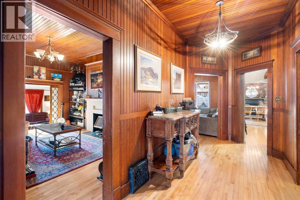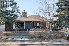 Once in a lifetime opportunity to own a truly irreplaceable piece of Calgary history. Originally the homestead of A.E. Cross and later the site of the original Braeside Farms, this is a property that simply cannot be replicated.Set on one of the largest lots in Braeside (¼ acre), this 2,901 sq. ft. bungalow is the largest bungalow ever offered in the community. Located on a quiet street on a raised lot with low-maintenance stucco exterior, the home offers exceptional curb appeal and privacy. Inside, original character has been carefully preserved and complemented by thoughtful updates over time. Fir detailing, slate tile, and hardwood flooring run throughout the main level. The front living room features the original floor-to-ceiling river stone fireplace, while a fir-paneled parlor provides a perfect home office or sitting room. The kitchen has been tastefully updated with white cabinetry, subway tile backsplash, updated counters, coffered ceiling, and stainless steel appliances including a gas range. Adjacent family and dining rooms boast both rich with original fir walls and detailing ideal for everyday living and entertaining. The dining room also features a third original fireplace, built-ins, and garden doors leading to the backyard. Three bedrooms are located on the main floor, including a spacious primary retreat with a third fireplace and spa-style ensuite with glass shower and jetted soaker tub. A second full bathroom, heated solarium, and large main-floor laundry room add flexibility and function. The fully developed lower level includes a fourth bedroom with adjacent 4-piece ensuite, a unique library with built-in shelving and reading nook, media room, and a flexible exercise or office space. Outside, the oversized private yard is a true highlight, featuring a large deck, mature trees and landscaping, ample lawn space, concrete sports pad, and white PVC fencing. An over-height double detached garage completes the property. Numerous updates have been com pleted over the years, including bathrooms, multiple high-efficiency furnaces, hot water tanks, roof replacement, and modernized finishes, all while preserving the home’s historic charm. A rare combination of history, scale, lot size, and character, this is one of Braeside’s most iconic homes ever to come to market. Please email realtor if you would like the virtual walkthrough and/or floorplan, but must be seen in person to see it's full grandeur. (id:6769)