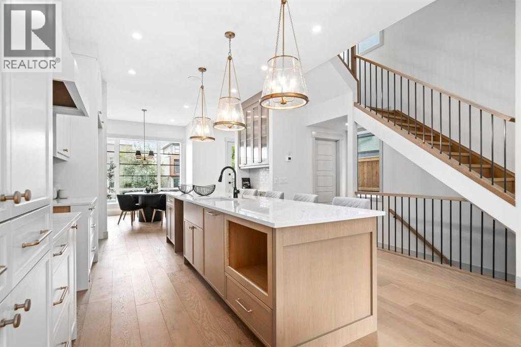 Set on a quiet cul-de-sac in WEST HILLHURST, this GORGEOUS NEW BUILD 3 STOREY DUPLEX delivers modern design, functional living and thoughtful detail in one of Calgary’s most established inner-city communities. A SOUTH BACKYARD enhances natural light and outdoor enjoyment. The main floor is designed for everyday ease and entertaining, with an open layout that flows naturally between the living room, dining area and kitchen. A FIREPLACE anchors the living space, creating warmth and visual interest, while HARDWOOD FLOORING provides durability and timeless appeal. The kitchen is thoughtfully planned with generous prep space, modern cabinetry and a layout that supports both daily routines and hosting. On the second level, well-proportioned bedrooms are complemented by a primary bedroom featuring a PRIVATE ENSUITE with a DOUBLE VANITY, offering comfort, functionality and a sense of retreat. The THIRD STOREY is a standout feature, offering a flexible retreat ideal for entertaining, working or hosting guests. This level includes a PRIVATE BEDROOM well suited for overnight visitors or a quiet HOME OFFICE, enhanced by separation from the main sleeping areas below. A WET BAR supports relaxed evenings and casual gatherings, while access to TWO DECKS with both NORTH AND SOUTH EXPOSURE allows for sunlight throughout the day, outdoor breaks between meetings or private lounging above the surrounding streetscape. The basement is developed to extend living space, offering flexibility for a media room, home gym or guest area, with finishes consistent with the quality found throughout the home. The EXTERIOR showcases a striking combination of BRICK and COMPOSIT ELEMENTS, delivering a modern aesthetic with lasting durability. LANDSCAPING is planned per the approved site design, with concrete walkways and defined outdoor spaces in place. Parking is accommodated by a DOUBLE DETACHED GARAGE accessed from the rear lane, providing secure, weather-protected parking and additional storage. WES T HILLHURST is prized for its walkability, mature tree-lined streets and strong community feel, with easy access to river pathways, parks, local shops and everyday amenities. Proximity to downtown, major routes and nearby neighbourhood favourites makes this location especially appealing for those seeking inner-city living without sacrificing comfort, privacy or connection to green space. (id:6769)
