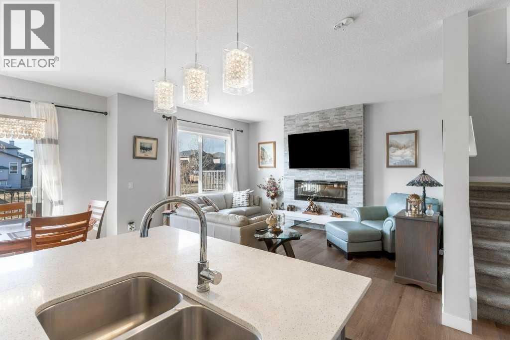 Why wait for new construction? This home offers the fresh, modern feel of new—without the delays, dust, or dirt. Fully landscaped, mostly fenced with window coverings for immediate enjoyment. Offering 3-bedroom, 2.5-baths located on a dead end road in the desirable Midtown community in Airdrie. Perfectly situated to easily access a variety of amenities, diverse parks, green spaces, and picturesque walking trails, with a tranquil POND NEARBY. What sets it apart from others: fronts a green space and BACKS a beautiful GREENBELT & STREAM allowing you to balance City life while taking in nature right off your SOUTH FACING BACK DECK. Inside, you'll find 9' ceilings, high-end SMART APPLIANCES, including a GAS STOVE with an air fryer. The kitchen is complete with stainless steel appliances, a CENTRAL ISLAND and an OVERSIZED CORNER PANTRY to accommodate your Costco haul. The laundry is currently located in the basement but there is optional hook-ups on the upper level should that be a buyers preference. The inviting living room features a stunning STONE ACCENT WALL with an electric fireplace and hearth, creating the coziest atmosphere. Upstairs, you'll be greeted by a central BONUS/FAMILY ROOM which allows for a winged bedroom design for additional privacy. The spacious primary bedroom's ensuite has dual sinks, a CENTRAL VANITY, and a large walk-in closet. The two additional bedrooms are generously sized, each with its own WALK-IN-CLOSETS. PROJECTOR & SCREEN (negotiable)! Several rooms/closets have auto-sensor lights for your added convenience. The SOUTH FACING back deck is complete with vinyl capping, offering a great outdoor space to enjoy the sunshine, and has stairs to lead you down to the fully accessible yard with garden boxes for you to enjoy. The basement is unspoiled, with high ceilings and awaits your development ideas. Don't miss your chance to own this beautiful home in this fantastic and convenient location in Airdrie. (id:6769)