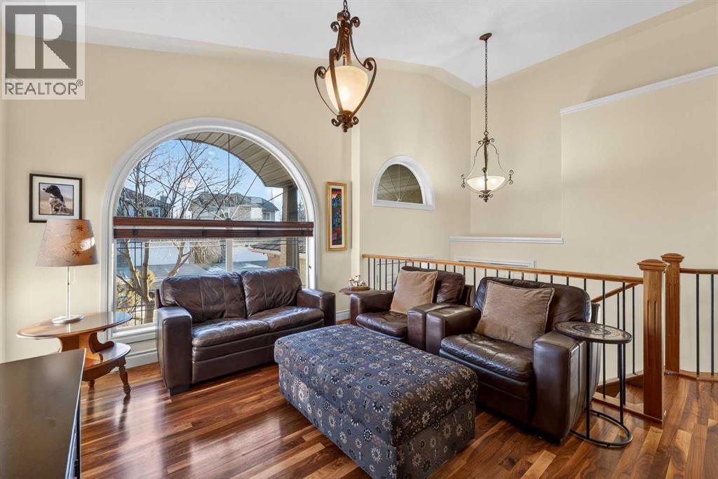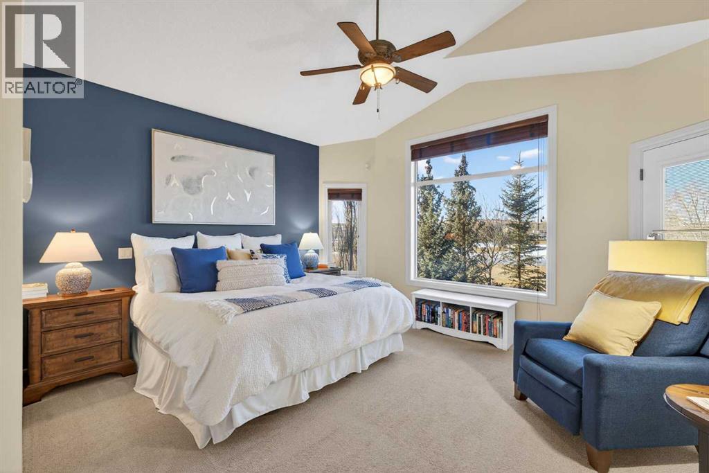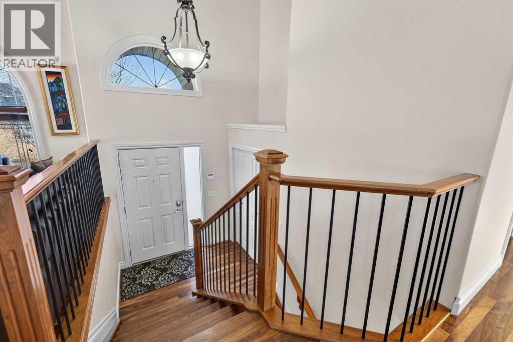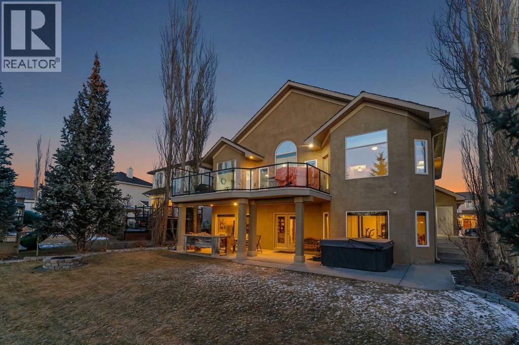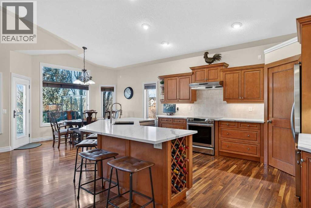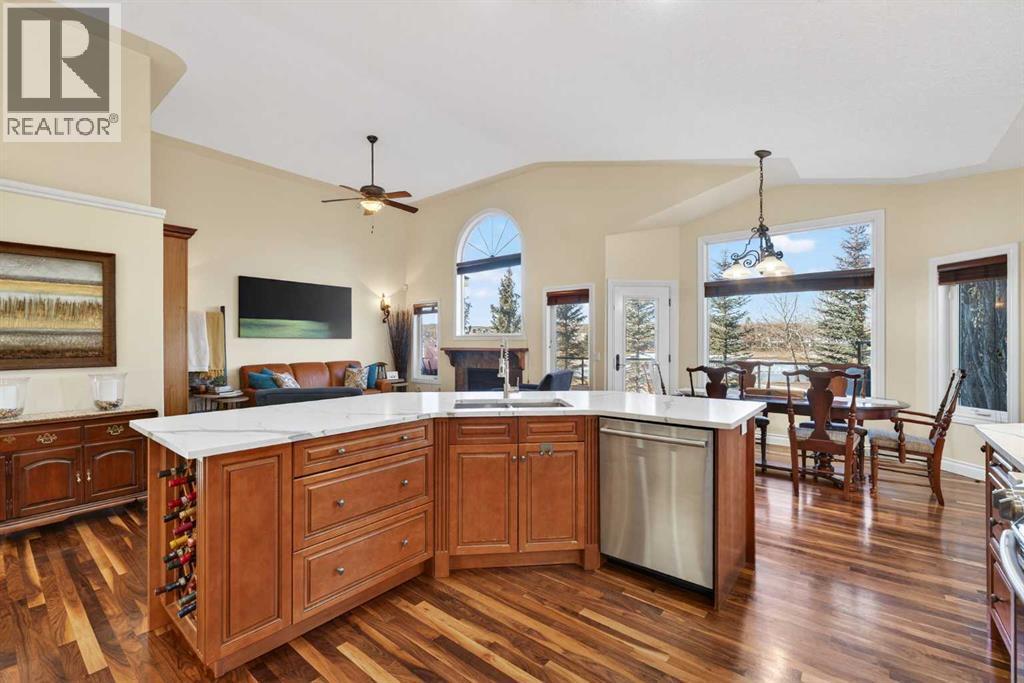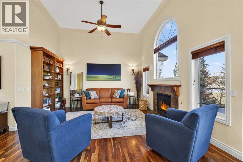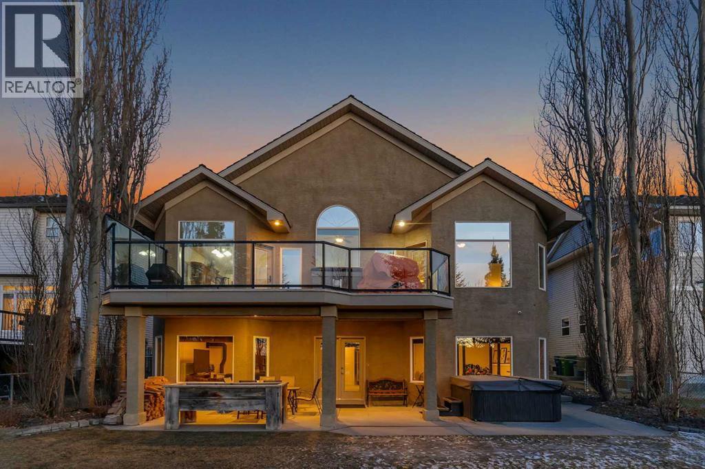 Open House - Sunday, Jan 25th from 12 - 2 pm & Sunday February 1st from 1-3 PM. Incredible opportunity to own this gorgeous walkout home with a triple car garage backing west onto Woodside Golf Course. The inside of this home is just as beautiful as the exterior with massive windows, vaulted ceilings and rich walnut hardwood floors that highlights the exceptional space. The kitchen has been recently updated with a modern backsplash, stone counters and a central island. Be prepared to host family and friends as this open concept design creates a natural space for entertaining. Off the dining space, a door leads to a full-width deck with two natural gas outlets for a BBQ and a heater. Back inside, the spacious living room overlooks the golf course and includes a cozy gas fireplace. The primary suite is a stunning oasis with gorgeous views, plenty of space, a walk-in closet and an elegant fully updated ensuite with dual sinks and a tiled shower. A second bedroom on this level and a 4 piece bath add versatility. The walkout basement is fully finished with a large rec area for movie nights with room for a home gym too. Two additional bedrooms and a 3 piece bath complete this level. Parking will never be an issue with a triple wide driveway and a three bay HEATED garage (29'11" x 24'7") with a mezzanine and built in storage. The yard has been professionally landscaped with underground sprinklers. Watch the golfers and enjoy the sunsets from your walkout deck or from your hot tub on the patio. This home has undergone many updates including central air conditioning, two new furnaces (2023), hot water tank (2024), new washer and dryer (2025), garage doors (2023), re-modelled kitchen and bathroom (2023), solar shield on most east and west windows, water softener, built in shelving throughout and roof maintenance with 5 year warranty. This is a central Airdrie location, close to the golf course, shopping and schools. (id:6769)