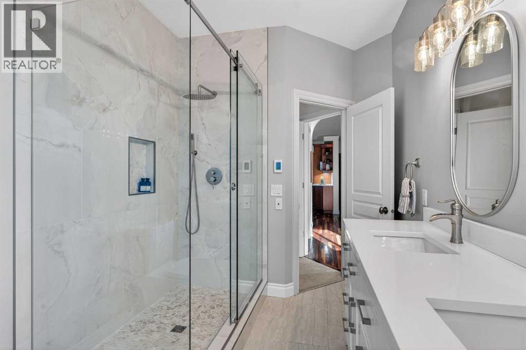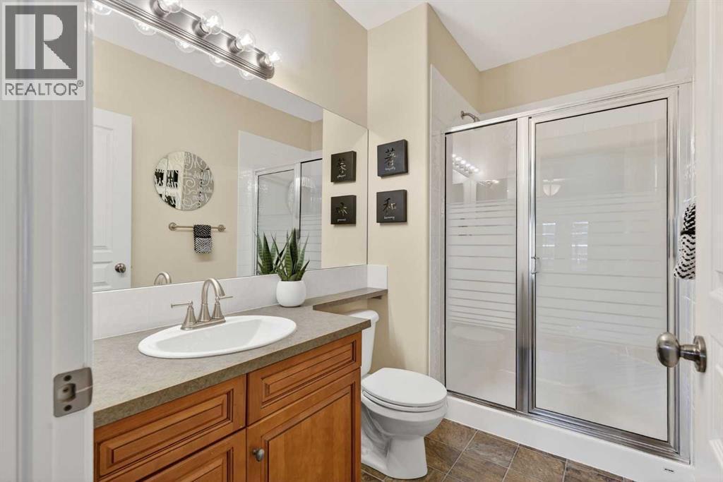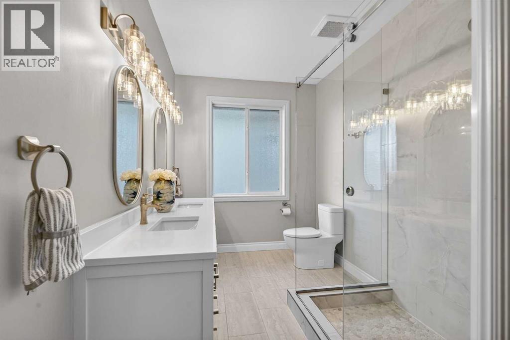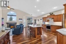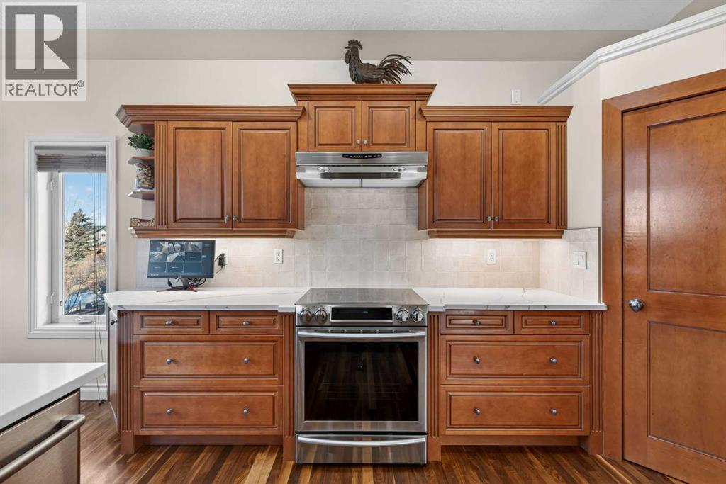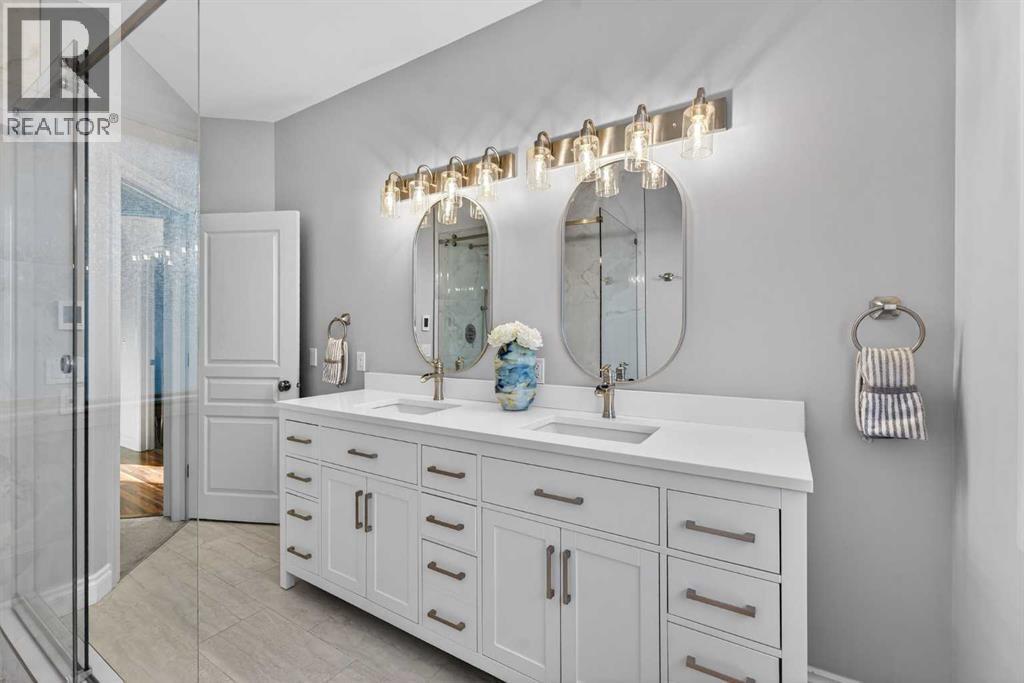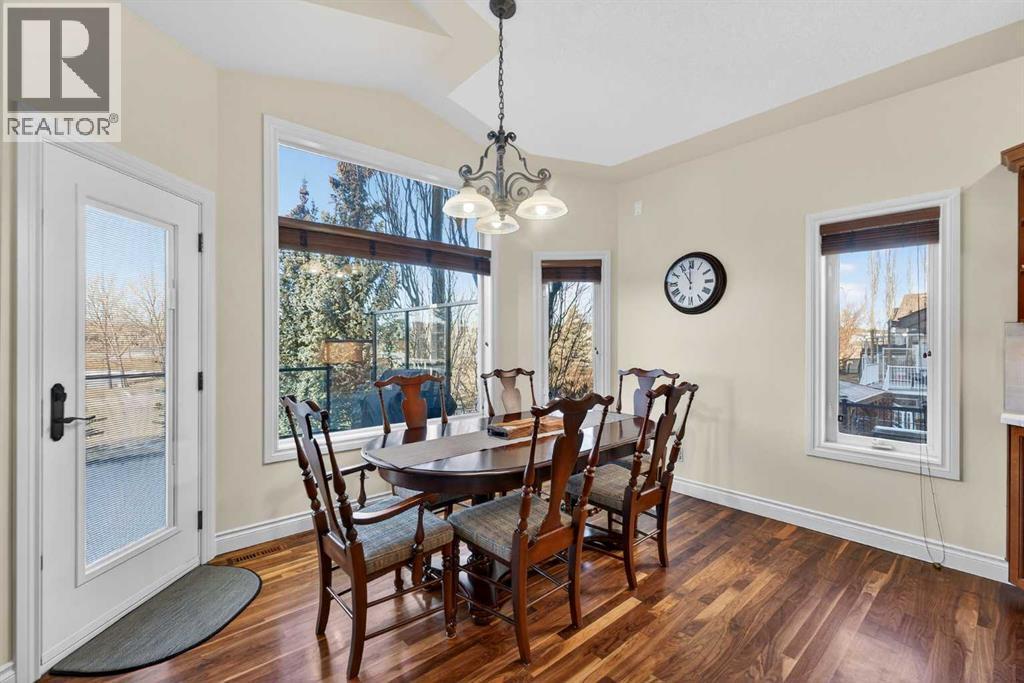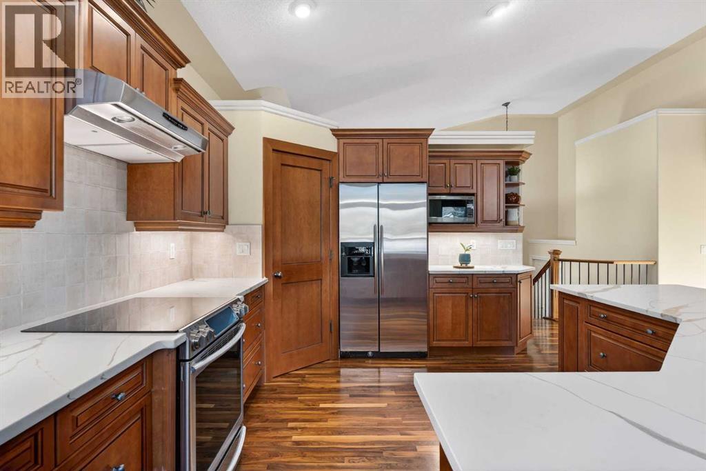 Open House - Sunday, Jan 25th from 12 - 2 pm & Sunday February 1st from 1-3 PM. Incredible opportunity to own this gorgeous walkout home with a triple car garage backing west onto Woodside Golf Course. The inside of this home is just as beautiful as the exterior with massive windows, vaulted ceilings and rich walnut hardwood floors that highlights the exceptional space. The kitchen has been recently updated with a modern backsplash, stone counters and a central island. Be prepared to host family and friends as this open concept design creates a natural space for entertaining. Off the dining space, a door leads to a full-width deck with two natural gas outlets for a BBQ and a heater. Back inside, the spacious living room overlooks the golf course and includes a cozy gas fireplace. The primary suite is a stunning oasis with gorgeous views, plenty of space, a walk-in closet and an elegant fully updated ensuite with dual sinks and a tiled shower. A second bedroom on this level and a 4 piece bath add versatility. The walkout basement is fully finished with a large rec area for movie nights with room for a home gym too. Two additional bedrooms and a 3 piece bath complete this level. Parking will never be an issue with a triple wide driveway and a three bay HEATED garage (29'11" x 24'7") with a mezzanine and built in storage. The yard has been professionally landscaped with underground sprinklers. Watch the golfers and enjoy the sunsets from your walkout deck or from your hot tub on the patio. This home has undergone many updates including central air conditioning, two new furnaces (2023), hot water tank (2024), new washer and dryer (2025), garage doors (2023), re-modelled kitchen and bathroom (2023), solar shield on most east and west windows, water softener, built in shelving throughout and roof maintenance with 5 year warranty. This is a central Airdrie location, close to the golf course, shopping and schools. (id:6769)