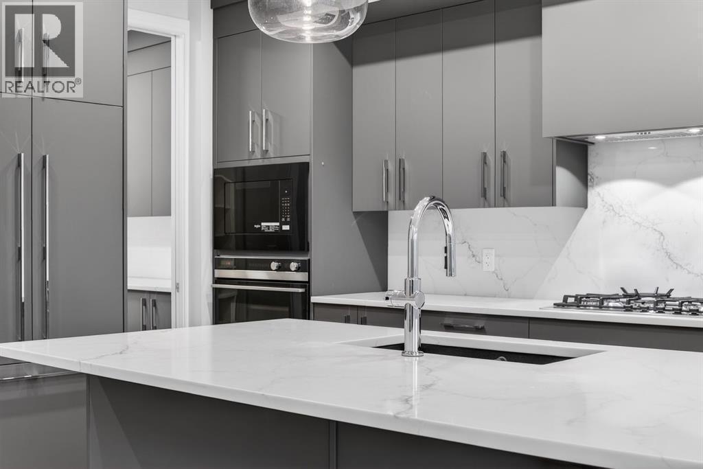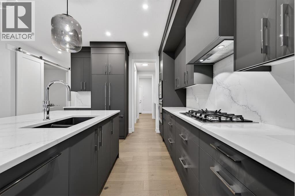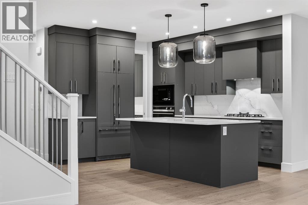 This TRUMAN-built residence is quietly situated on an exclusive cul-de-sac in the highly sought-after enclave of Westland Estates. Defined by refined craftsmanship, premium finishes, and timeless design, the home offers a rare balance of elegance, comfort, and long-term value.The open-concept main level is anchored by a chef-calibre kitchen featuring full-height custom cabinetry, soft-close doors and drawers, quartz countertops, and a premium integrated appliance package including a panelled refrigerator, gas cooktop, built-in microwave, and wall oven. A walk-in pantry with custom built-ins enhances both aesthetics and functionality. The kitchen flows seamlessly into the open-to-above great room, where dramatic two-storey ceilings create an impressive sense of volume. A gas fireplace with striking floor-to-ceiling architectural detailing serves as a commanding focal point, anchoring the space with warmth and understated elegance—ideal for both entertaining and quiet evenings.The main floor is completed by 9’ ceilings, wide-plank hardwood flooring throughout, a versatile private den, and a thoughtfully designed powder room, all curated for effortless daily living.The upper level is distinguished by a primary retreat with tray ceiling, spa-inspired five-piece ensuite, and a generous walk-in closet. A centrally positioned bonus room, two additional bedrooms, a well-appointed four-piece bath, and upper-level laundry offer both comfort and functionality.The undeveloped lower level, featuring a separate side entrance, presents exceptional flexibility for future customization—whether a private gym, media lounge, or bespoke recreation space.Built by TRUMAN, a name synonymous with quality and architectural integrity, this home offers a rare opportunity to experience the privacy of Westland Estates while enjoying close proximity to the amenities, schools, and lifestyle of West Springs. A residence defined by distinction, designed for those who appreciate quiet luxury. (id:6769)