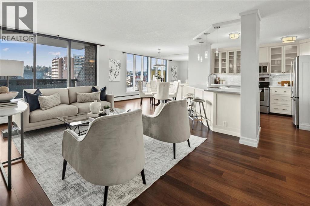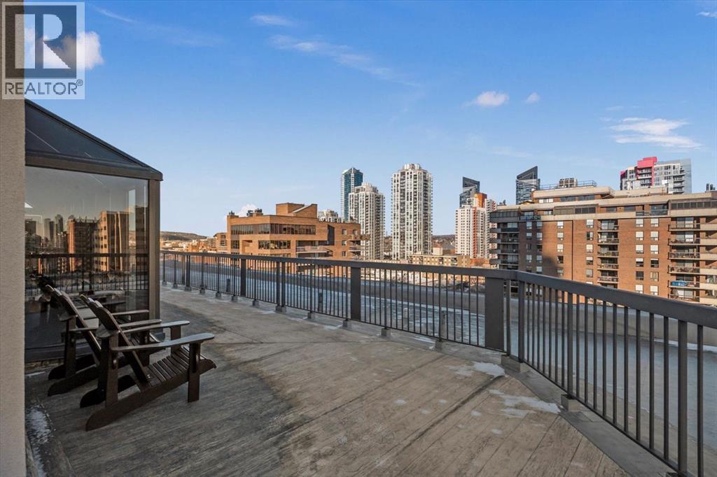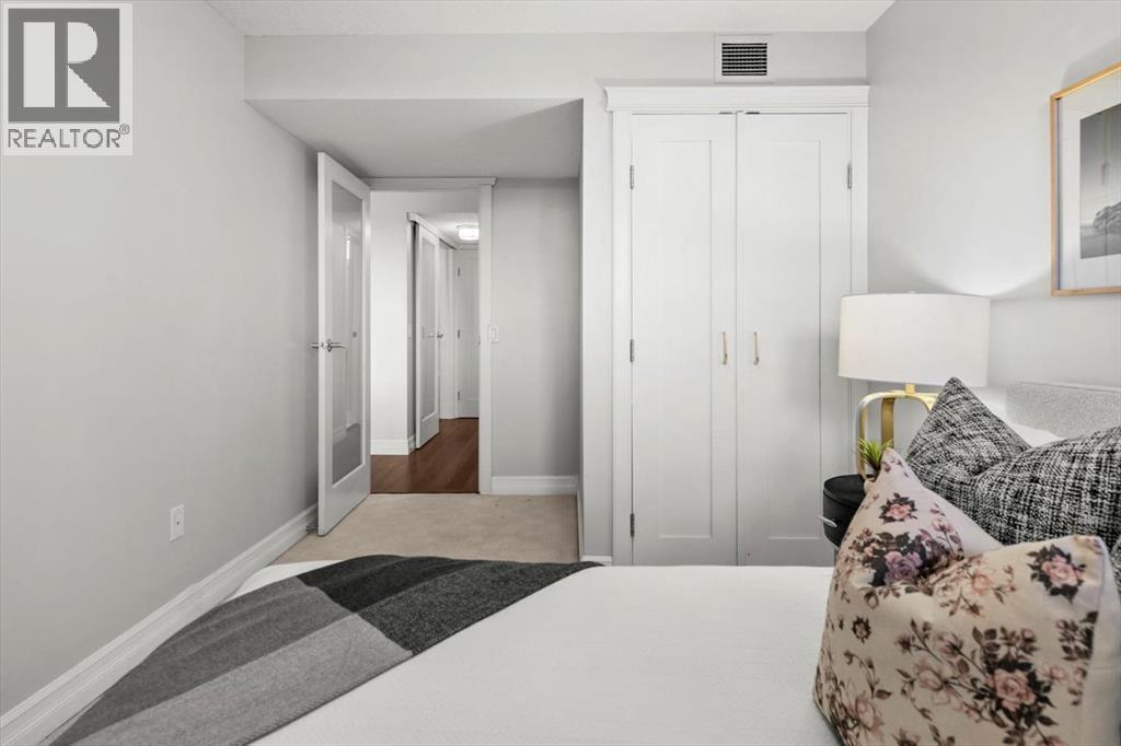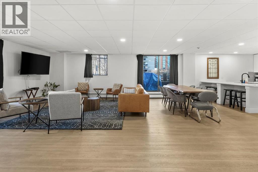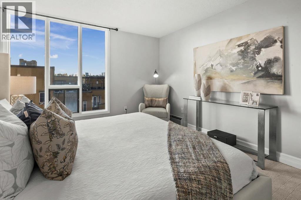 Are you looking for an airy condo in a premium location with a sunny south exposure, and a shared rooftop terrace? What about over 1150sqf with numerous renovations, a large balcony and steps from the restaurants and shoppes of 17th Avenue? This open concept home features A/C, in home storage, an updated kitchen and bathrooms set behind a spacious foyer. A well-managed complex right in the heart of the Beltline, Cozart is amenity rich with onsite management, a party room, Sky Lounge, gym and car wash. In addition to being super transit accessible - walk to work, or out to meet friends at local treasures like Betty Lou’s Library, Alumni or The Sweatered Hen. Many condos in the DT have you walk right into the living area, but this home has a grand tiled entrance foyer, and as you walk into the space – take note the natural light cascading through bright windows. The oversized kitchen with eat up island provides plentiful storage and counter space, plus a custom built in dry bar/buffet. The dining area sets the scene for many a dinner party, and the living room allows you to host numerous friends for games night, or to watch your favourite shows. The primary suite is set back from the living area and easily fits a king size bed plus has room for a reading nook, with closet storage, built in library shelving and an ensuite bathroom complete with soaker tub and stand-up shower. Also find a second bedroom that is great for a guest room, home office or den, a 3-piece bathroom and in suite storage/laundry room. An assigned underground parking stall and storage locker complete this offering. Whether you are downsizing or moving up to a bit more space, this home is ready for a new owner. Enjoy year-round views from the rooftop patio that also has a cherished solarium lounge. This building is well managed, well maintained and celebrates community. Come and have a look before She Gon’! (id:6769)