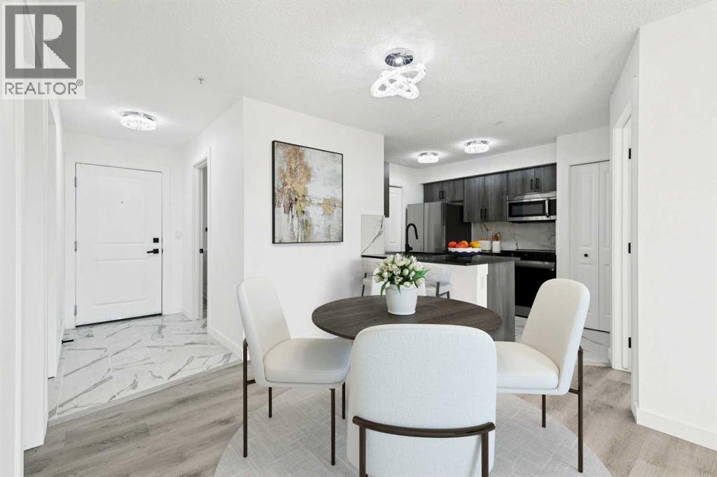 Modern, move-in ready living in the heart of Legacy. This fully updated 2-bedroom, 2-bathroom condo sits on the third floor with a west-facing exposure that brings in beautiful afternoon light. The open-concept design blends the living and dining areas seamlessly, offering a functional layout that works just as well for everyday living as it does for entertaining. A breakfast bar defines the kitchen space, while large windows throughout enhance the bright, airy atmosphere. Thoughtful upgrades include granite countertops, updated kitchen cabinetry, stainless steel appliances, fresh paint, and luxury vinyl plank flooring, delivering a clean, modern finish throughout. The primary bedroom features a walk-through closet and private 4-piece ensuite, while the second bedroom and full bathroom provide flexibility for guests, a home office, or shared living. In-suite laundry with full-size machines and extra storage add to the home’s practicality. Step outside to the spacious covered balcony, ideal for unwinding or hosting friends. This unit also includes a titled underground parking stall in a heated parkade, along with secure bicycle storage. Conveniently located near shopping, dining, parks, pathways, and the South Health Campus, with easy access to Macleod Trail, Stoney Trail, and Deerfoot Trail. Public transit is just steps away, making this a fantastic option for first-time buyers, downsizers, or investors looking for a stylish, low-maintenance home in a well-connected community. (id:6769)