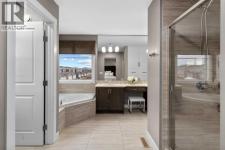 Welcome to this beautifully upgraded former Shane Homes SHOW HOME, perfectly situated on a quiet street and facing a kids playground in the heart of Cornerstone. Known for exceptional customization and craftsmanship, Shane Homes designed this property with thoughtful details throughout, making it truly feel like you are living in a show suite.This impressive home offers a double attached garage, four spacious bedrooms, two and a half bathrooms, and a newly developed two-bedroom LEGAL SECONDARY SUITE. From the moment you step inside, the grand entrance with high ceilings sets the tone for the elegance that follows. The main floor features a chef-inspired kitchen with built-in stainless steel appliances, custom cabinetry with crown molding, a large central island, and a walk-through butlers pantry with additional custom storage. A formal dining room, casual dining nook, bright and luxurious living room with a gas fireplace, functional mudroom, and a convenient two-piece bathroom complete the main level.Upstairs, the home opens into a massive family room that is ideal for gatherings or relaxing. Four generously sized bedrooms provide ample space, while the thoughtfully designed laundry room includes custom counters and cabinetry. The primary suite is a true retreat, featuring a spa-like ensuite with double vanity, a mirror extended to the ceiling, a stand-up shower, a relaxing soaker tub, and a large walk-in closet with custom cabinetry. The additional three bedrooms are bright, comfortable, and offer excellent closet space.The recently developed basement features a legal two-bedroom suite with its own full kitchen, stainless steel appliances, separate laundry, comfortable living area, and a three-piece bathroom, which is perfect for extended family or rental income.Additional upgrades include a water softener, water purifier, and central air conditioning, providing enhanced comfort and convenience year-round.Outside, the home sits on a desirable corner lot a nd includes a fully fenced and landscaped backyard with a large deck and pergola, creating an ideal setup for enjoying summer evenings. With the playground right across the street, this location is perfect for families seeking both community and lifestyle.Residents enjoy close proximity to Chalo Freshco, the future Gurdwara, the community pond, restaurants, schools, and several commercial plazas. Quick access to Stoney Trail and Country Hills Boulevard makes commuting easy, while CrossIron Mills, Costco, and the Calgary Airport are only a short drive away.This property is truly a must-see. Experience the quality, upgrades, and design that make this former show home stand out. Book your showing today. (id:6769)