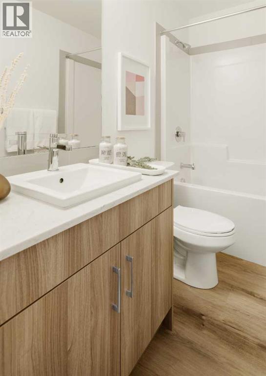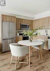 Welcome to the Curnoe 2 by Logel Homes—a thoughtfully designed unit featuring full-height cabinetry, quartz countertops, luxury vinyl plank flooring throughout, and tile in the bathroom. The upgraded kitchen offers a modern backsplash, premium sink and faucet, and stainless steel appliances. Nine-foot ceilings and large windows provide abundant natural light, while in-suite laundry adds everyday convenience. This home includes a titled parking stall and is backed by the Alberta New Home Warranty.Located near shopping, public transit, and major routes, including Deerfoot and Stoney Trail, it offers excellent city access. With affordable condominium fees, this pre-sale opportunity allows you to customize your new home, with an estimated completion in Spring/Summer 2027. (id:6769)