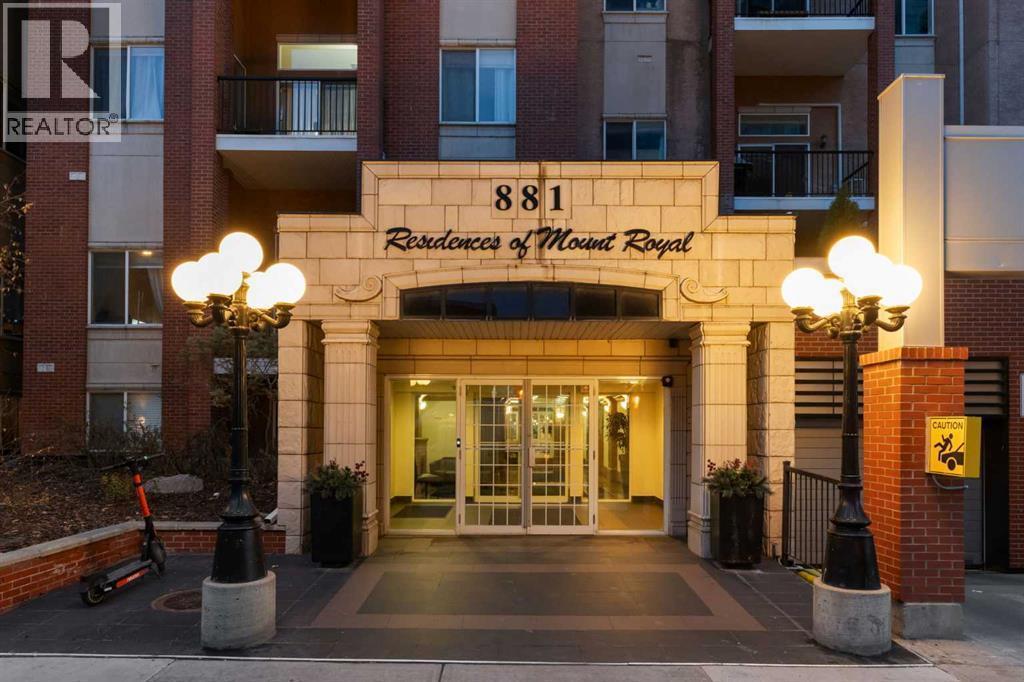 This fully renovated two-bedroom, two-bathroom condo in the Residences of Mount Royal offers turnkey living in the heart of the Beltline. Following a top-to-bottom $100,000 RENOVATION, the home feels entirely new with fresh finishes, upgraded details, and a reimagined interior layout. 11 FT CEILINGS and SOUTH FACING WINDOWS fill the open-concept space with natural light, while the BRAND NEW KITCHEN features QUARTZ COUNTERTOPS, STAINLESS STEEL APPLIANCES, CUSTOM CABINETRY, MODERN LIGHTING, a GARBURATOR, and FILTERED WATER. Both bathrooms have been completely updated, including a stylish three-piece main bath and a refreshed FOUR-PIECE ENSUITE off the primary bedroom, which also includes a generous WALK-IN CLOSET. Additional comforts include AIR CONDITIONING, a natural GAS FIREPLACE, POWER BLINDS, a Murphy bed, IN-SUITE LAUNDRY, a GARBAGE CHUTE, a bicycle room, a titled UNDERGROUND PARKING STALL, w/ STORAGE, and a BBQ GAS LINE HOOKUP on the oversized balcony. Directly connected to the +15 NETWORK, you’re steps from Save-On-Foods, Canadian Tire, Shoppers Drug Mart, Analog Coffee, GoodLife Fitness, West Elm, the new Lululemon on 17th, Fork & Greens, Tim Hortons, Browns Social House, and more. Condo fees include all utilities except electricity. Move-in ready and impeccably finished—book your showing today. (id:6769)