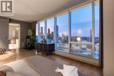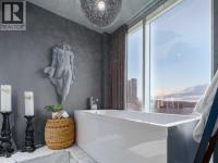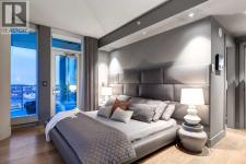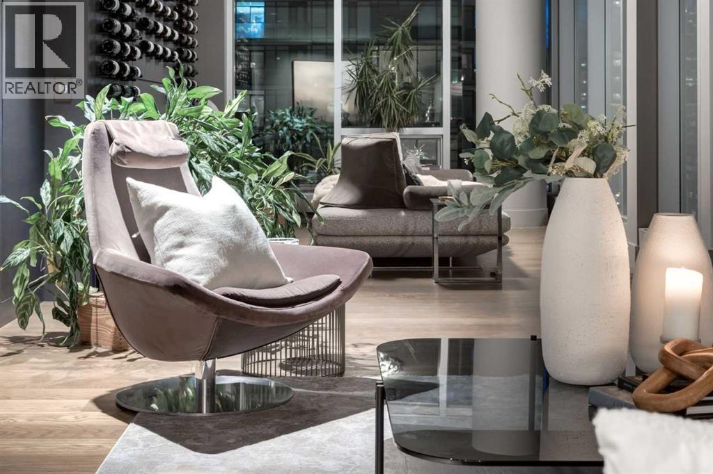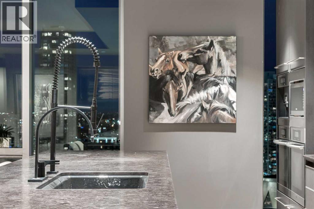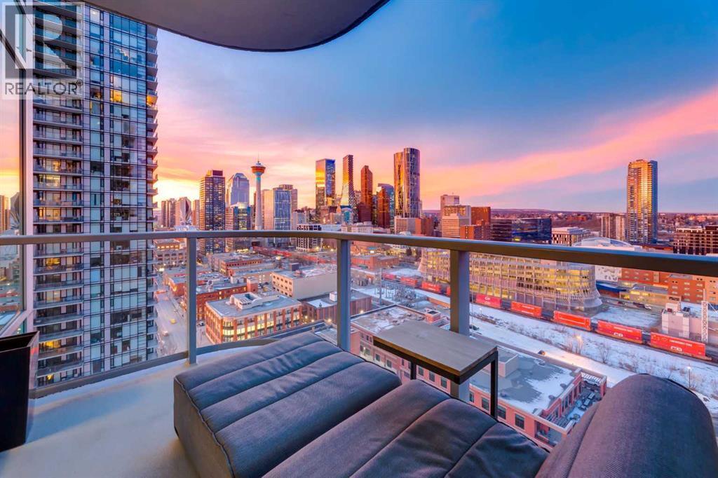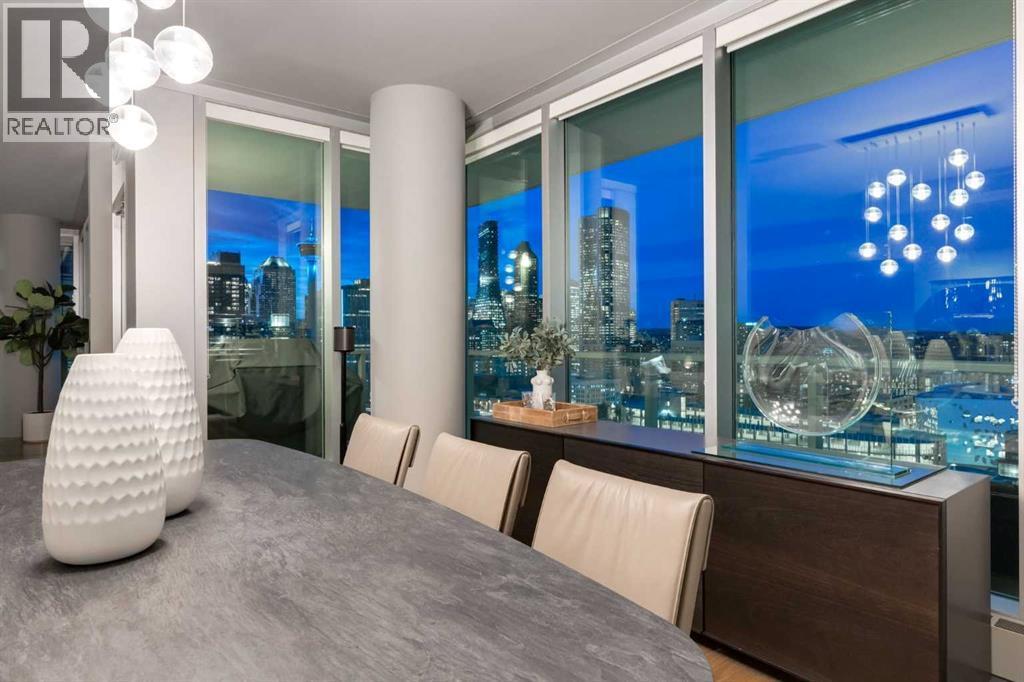 Experience panoramic views of the city skyline from every window in this modern executive two-bedroom residence. This incredible two-bedroom property offers almost 2600 SF of visionary living space and is centrally located for its new owners to take in “all of what downtown living” has to offer. This property whispers sophistication and refined living with its cutting-edge interior design. A concierge is on-site 24/7 to greet your guests and provide the utmost in secured living. Three parking stalls are included for your summer convertible toys. The state-of-the-art designer kitchen features a full Miele luxury appliance package and a gigantic leathered granite island, perfect for Sommelier-hosted wine tastings and entertaining. The living room features rift oak custom hidden cabinetry on each side of the media center and is open to the lovely dining space that features a Bocci chandelier hovering over this dreamy space. The relaxation lounge has the most stupendous views of the Calgary Tower and city skyline and showcases a Vin de Garde luxury wine display wall. The romantic primary suite features its own East terrace, two dressing rooms and a decadent spa-like ensuite with a free-standing bathtub set on a marble base, dual vanities and a frameless glass marble shower. The secondary suite is situated on the East wing with streams of natural light and has its own ensuite. This space is perfect for guests or can be used as a home office. (id:6769)