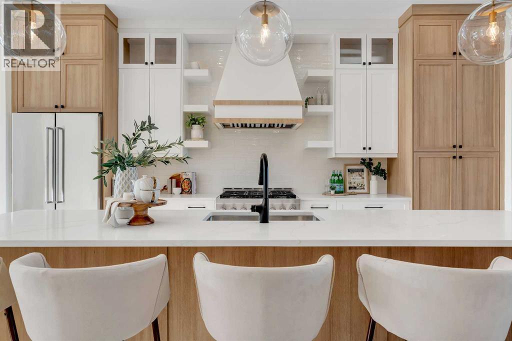 --OPEN HOUSE SATURDAY/SUNDAY 1-3PM---QUIET LOCATION- WALKOUT BASEMENT-Welcome to this beautiful, brand-new semi-detached home in the sought-after community of Richmond. Featuring a fully finished walk-up basement and a double detached garage, this home blends a functional layout with stylish, high-quality finishes that are both modern and comfortable. Step inside to a bright, open-concept main floor highlighted by wide-plank hardwood flooring throughout. The front foyer includes a practical built-in with vertical shiplap detailing, offering both charm and everyday organization. The kitchen is the true centerpiece of the home, anchored by a large waterfall quartz island with seating. Stainless steel appliances — including a gas range — pair perfectly with the two-tone cabinetry in warm wood and crisp white for a timeless, contemporary feel. The kitchen flows seamlessly into the dining area and living room, where wall-to-wall sliding glass doors flood the space with natural light and provide easy access to the backyard. A standout feature here is the gas fireplace, finished with beautiful dark floral tile that adds personality without overpowering the space. A convenient two-piece powder room completes the main level. Upstairs, you’ll find three generously sized bedrooms along with a dedicated upper-floor laundry room. The primary suite is a relaxing retreat, complete with a tray ceiling and a walk-in closet. The spa-inspired five-piece ensuite offers a dual vanity, glass-enclosed shower, and a freestanding soaker tub — perfect for unwinding at the end of the day. The fully finished lower level features a walk-up entrance that brings in additional light and provides direct backyard access. This level includes a spacious rec room with a built-in wet bar, wine storage, sink, and floating shelves — ideal for entertaining. A fourth bedroom and a full four-piece bathroom make this space perfect for guests, a roommate, or older children wanting more privacy. Situated on a q uiet street, this home offers an unbeatable location close to everything Killarney has to offer. You’re within walking distance to Marda Loop, and the shops and restaurants. This is an excellent opportunity to own a move-in-ready home in one of Calgary’s most desirable inner-city neighbourhoods.- ASK ABOUT OUR UPGRADE OPTIONS- ATTACHED UNIT ALSO AVAILABLE. (id:6769)