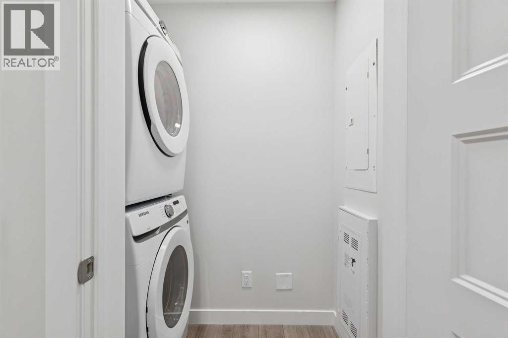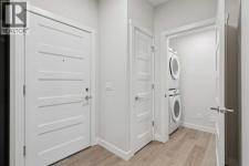 Welcome to The Whitney in beautiful Springbank Hill, where modern design meets natural serenity. This gorgeous suite is ideal for professionals, first-time homebuyers, mature couples, or investors seeking exceptional value in a premium location. It’s a rare opportunity to own a beautifully finished home in a prestigious neighbourhood - one that offers luxury living at an affordable price. Step into your brand-new 1-bedroom/1-bath home, thoughtfully designed with elevated finishings throughout. The heart of the home is the stunning kitchen, featuring an open layout that feels bright and effortless. Enjoy luxury vinyl plank flooring, quartz counters, upgraded soft-close cabinetry, and stainless-steel Samsung appliances -perfect for gourmet cooking or entertaining. The spacious bedroom offers a true retreat, complete with an extensive walk-through closet that provides exceptional storage and flows into the 4-piece sparkling bathroom. One of the standout features of this home is the generous balcony, adding an impressive 148.8 sq. ft. of outdoor living space - ideal for morning coffee, evening dinners, container gardening, or simply relaxing. You’ll love the comfort and convenience of in-suite laundry and air conditioning. Convenient features continue with titled underground parking, storage, and premium sound attenuation for added peace and quiet. Outside your door, an exceptional lifestyle awaits. You’re just a 5-minute stroll to Aspen Landing, home to more than 50 shops and services-Safeway, Starbucks, Shoppers Drug Mart, restaurants, banks, and more. The C-Train, transit, and major routes like 17th Ave SW are moments away, making it an easy 10-minute commute to downtown. The upcoming Springbank Hill Market will add even more vibrancy to this already sought-after neighbourhood. With its perfect blend of style, comfort, and walkable urban-meets-nature living, this home is a winner! Book your showing today, as it's move-in ready and waiting for you! (id:6769)