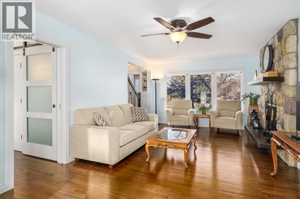 A thoughtfully, well-designed two-storey home with numerous improvements and upgrades is now available in the very desirable SE community of Bonavista Downs. This is a unique home in that it features two garages. The first is a front-facing, single (21’x12’), attached, insulated and heated garage with upgraded wiring, and finished interior which includes shelving. The front rubber-paved driveway offers additional parking. The second is an oversized double (25’ x 28’), heated, detached garage accessed from the paved alley, and has a finished interior which includes shelving, cabinets, and a workbench and is wired for 220 volts. Three bedrooms, 3.5 baths and 2,250 sq. ft. of living space on three levels. Upon entering the tiled foyer, the natural light flowing in from the upgraded triple pane windows on all sides is remarkable. Motorized window blinds allow you to control the light factor. The main floor is comprised of living room, dining room and kitchen and has warm hard wood floors throughout. To the left is the living room with woodburning, stone surround fireplace and enough space to experiment with various furniture configurations. The rear deck is accessed via French doors in the living room. To the right of the foyer is the dining room with ample room for entertainment and is adjacent to the kitchen. Cream cabinetry and plenty of it in the kitchen is a beautiful contrast to the dark granite countertops and tiled backsplash. Gleaming stainless appliances and a pantry add to the efficiency. A 2-pc. bath completes the main level. Moving upstairs, there is a combination of hardwood and laminate flooring. The primary bedroom is large and sunny with the benefit of a newly added walk-through closet and 4-pc. ensuite (double vanity). Two additional bedrooms, both with generous-sized closets, share a 4-pc. bath. The basement has been attractively finished and features a large, carpeted rec room with a second woodburning fireplace (both fireplaces passed WETT inspecti on in 2023). Across from the rec room is a tiled home office and tucked back of that is the laundry room with upgraded plumbing, venting and wiring; storage area and an upgraded 3-pc. bath. The house, attached garage and detached garage all have well-insulated (R40) attics. In 2023 the furnace was upgraded to a high-efficiency model with smart thermostat, a tankless water heater was installed and the humidifier was replaced. Both front and back yards are landscaped with lawn and mature trees. The back yard is fenced and has sprinklers installed. A bonus is your own hot tub. Well situated and close to Stoney, Deerfoot and Macleod Trails and Anderson Road. Proximity to shops and restaurants on both Macleod Trail and 130th Avenue; the Bow River; numerous schools (public and Catholic); churches; playgrounds; dog parks; Fish Creek Provincial Park and South Health Campus. This home has obviously been well tended as evidenced by the many upgrades and enhancements. Don't miss out on this outstanding opportunity. (id:6769)
