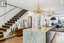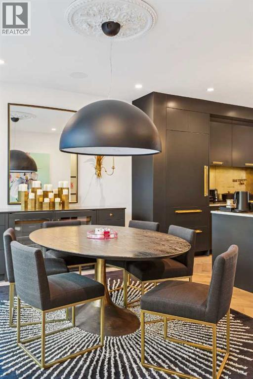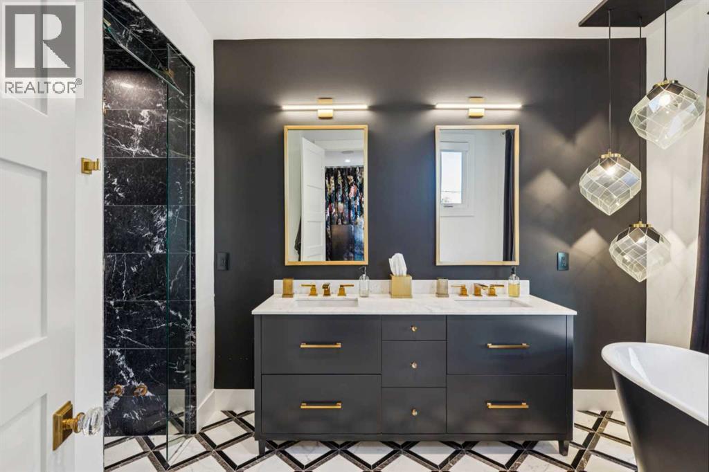 Exceptionally high-quality home in sought-after Parkhill, just a few doors from the Ridge Park with direct access to the Elbow River pathway system. Enjoy a walkable lifestyle minutes from the vibrant 4th Street Village, offering an endless array of shops, dining, and services, along with proximity to excellent schools. This stunning contemporary residence showcases impeccable craftsmanship and design with bespoke architecture by Marvin DeJong and an incredible array of upgrades. Brick, metal, and stucco create a striking curb appeal punctuated with a custom 2.5” solid oak and glass front door. Over 3,096 sq ft of developed living space including 4 bedrooms and 3.5 bathrooms. The totally open-concept main floor features high ceilings, exceptional natural light from the oversized front and rear windows and custom herringbone hardwood floors. The living room is anchored by a custom-panelled fireplace with “frame” television and soft floor-to-ceiling sheers. Truly incredible chef’s kitchen with extensive custom cabinetry, quartzite counters and a massive “waterfall” island with seating. Top appliances include: a La Cornue gas stove, Subzero fridge plus 2 fridge drawers, 2 Subzero freezer drawers, 2 Subzero wine fridges, Wolf Induction burner, 2 dishwashers and a custom fabricated quartzite sink. The generous dining area with designer lighting and built-in storage overlooks the rear yard . A heated-floor mudroom with excellent storage and a discreet, elegant powder room complete the main level. Striking staircase with glass wall and solid wood treads leads to the upper floors…no carpet in the home. The primary suite features blackout drapery, wall-mounted TV and a well-organized walk-in closet. The spa-inspired ensuite showcases heated and custom marble flooring, designer lighting, Kateryn cast iron soaking tub, zero-threshold shower with steam, water closet with Japanese bidet toilet and a large double vanity with honed marble counter and Restoration Hard ware fixtures. The balance of the second level includes two bright bedrooms (one currently used as a dressing room), a spacious family bath and a walk-in laundry room with sink and storage. The top-floor holds a large studio space with amazing light quality. Also an office area with access out to a large and private terrace. The fully finished lower level offers heated hardwood floors, a media space, games room, work station, bedroom and a full bath. Outdoor living is equally impressive, with a front terrace and rose garden and a sunny west-facing and low-maintenance back yard with multiple patios. Additional highlights include a smart home system that will control Lutron lighting, temperature and security. Also irrigation and Gemstone exterior lighting. The fully finished and heated double garage has 2 EV chargers and a paved alley. This exceptional property must be seen to be appreciated. (id:6769)