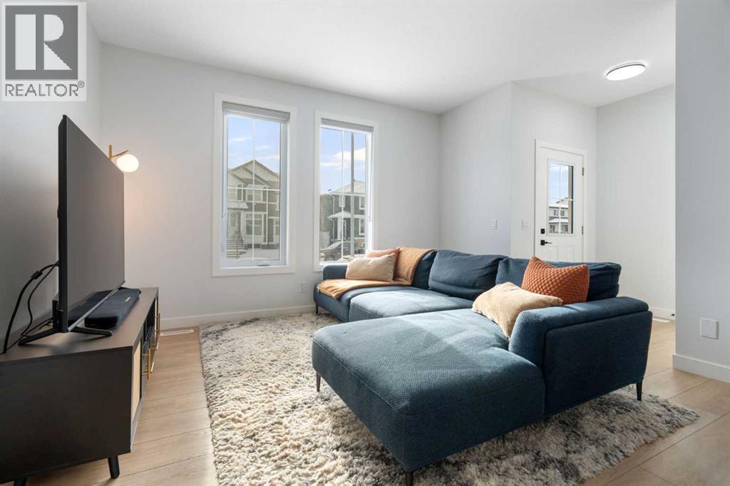 Welcome to 158 Ambleton Drive NW — the kind of home that lets you skip the wait and start living right away. Located in the highly sought-after NW community of Ambleton (Moraine), this thoughtfully upgraded and move-in-ready home built in 2022 offers 1,774 sq ft of well-planned living space, plus an unfinished basement. With a separate side entrance including bathroom and laundry rough-ins, it provides excellent future flexibility.The main floor is centred around a beautifully upgraded kitchen designed for real life, featuring full-height cabinetry to the ceiling, quartz countertops, an oversized island, and upgraded appliances. The open layout keeps everything connected and comfortable, whether you’re easing into your morning or hosting friends.Upstairs, all three bedrooms are thoughtfully placed. The primary suite offers a true retreat with double sinks, a separate tub and shower, a walk-in closet, and the convenience of upper-floor laundry right where you need it.Out back, the home continues to impress with a fully landscaped yard and two-tiered deck—perfect for summer evenings, weekend BBQs, or simply unwinding at the end of the day. A spacious rear entry connects the backyard to the double detached garage, with ample street parking for guests. Central air conditioning, window coverings, and a new roof (2025) add even more peace of mind.Set on a quiet, completed street and steps from the community walking paths, this location offers an easy balance of outdoor space and convenience, with nearby amenities, parks, and quick access to major routes throughout NW Calgary.Where this home really shines is in what’s already done and waiting for you. The yard is finished, the deck is built, and the upgrades are in place—no post-possession projects or added costs like you’ll find with many new builds. With new home warranty remaining and clear pride of ownership, this home is a perfect fit for first-time buyers or those ready to step up from an apartment or townhome a nd move in with confidence.Call your favourite Realtor and book your showing today! (id:6769)