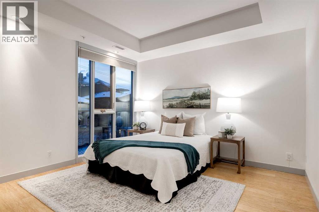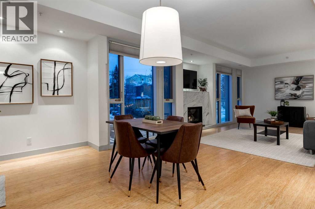 Penthouse living awaits in this stunning, 3 bedroom, 3 bath home with over 1400sqft of thoughtfully designed living space! The open concept layout has 9 ft ceilings, floor to ceiling windows to bring in plenty of natural light and high end finishings throughout. The chef inspired kitchen features lacquered cabinetry, stainless steel appliances, quartz counters, and a large island with breakfast bar overlooking the dining and living rooms - ideal for entertaining. Step out from the dining room unto the balcony to enjoy the downtown, while your spacious living room is anchored by a striking marble-tiled gas fireplace. The primary bedroom has a 5 piece ensuite and an oversized walk-in closet with built-in organizers. 2 additional bedrooms are well proportioned - one with a walk-in closet - are conveniently located near 2 full bathrooms, perfect for sharing or guests. Insuite laundry and a titled stall in the underground parkade complete this home. Located within an easy walk to Marda Loop and it's many shops, restaurants and amenities, plus with a quick commute to downtown, this home is not to be missed! (id:6769)