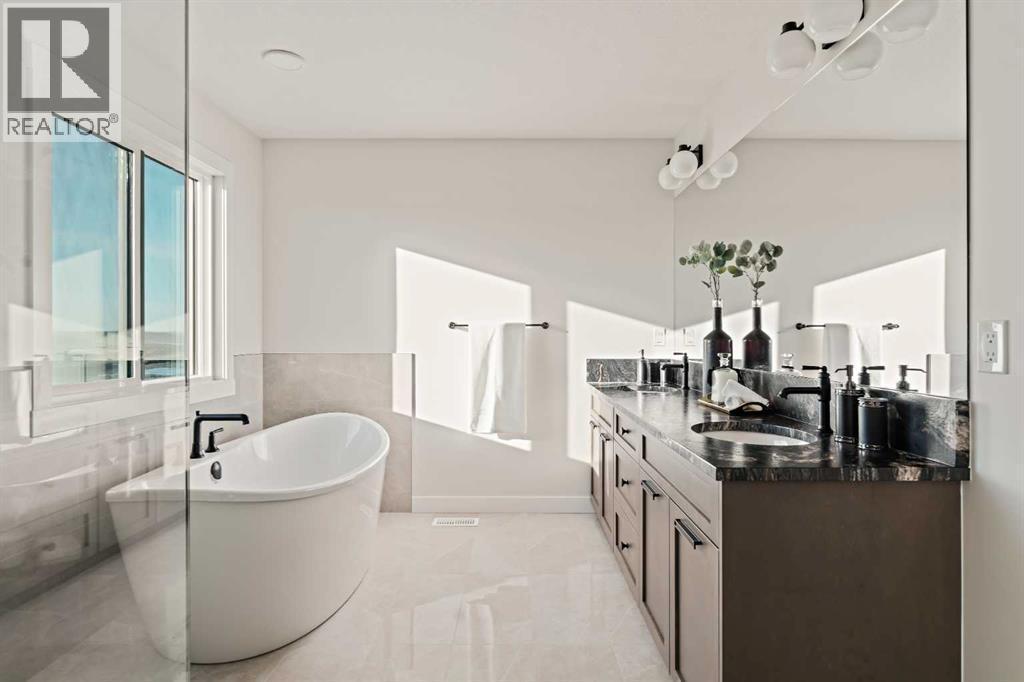 Welcome to the brand-new Accadia by Brookfield Residential, a thoughtfully designed home that blends modern luxury with functional living. Featuring 7 bedrooms and 5 bathrooms, including a legal 2 bedroom suite, this home is perfect for a large family, multi-generational living, or investors that want exceptional value today with incredible resale value long term in this versatile plan that provides endless opportunities. Perfectly situated on a 36' wide traditional lot with a 28’ wide home, this striking residence offers a seamless combination of style and comfort for today’s lifestyle. Elevated interior design carries throughout this stunning entire estate home, providing a timeless space where you'll not only be proud to live but excited to host and entertain. Step inside and be greeted by a bright, open-concept layout featuring 9’ ceilings throughout the main level, designed to maximize space and natural light. The main floor boasts a gourmet kitchen complete with under-cabinet lighting, built-in appliances including a gas cooktop, a full butler's pantry, and high-end finishes including two tone cabinetry with leather finish granite - all designed to make cooking and entertaining effortless. Adjacent to the kitchen, enjoy a spacious dining area with patio doors leading to the rear deck and expansive backyard. The dining space opens to the main living area which has a central fireplace with a beautiful arched surround. A wall of windows across the back of the home capitalize on the southwest backyard exposure - maximizing natural light all year long. Convenience and flexibility are at the heart of this home with a main-floor bedroom with full bathroom that features a tiled shower with 10mm glass, making it ideal for guests or multi-generational living. Natural wood & iron spindle railing lead to the upper level where you're greeted by an expansive central bonus room that separates the primary suite from the other three bedrooms - adding privacy & everyday functio nality. The main primary suite spans the entire width of the home and overlooks the backyard, complete with a spa-like 5 pc ensuite with an oversized tiled shower with 10mm glass, soaker tub, tile wainscotting, dual vanity, private water closet & a sprawling walk-in closet. The upper level is complete with a second primary suite complete with its own full ensuite and walk-in closet. The upper level is rounded out with two more bedrooms (4 total), a 5pc main bathroom, laundry room and linen closet. The lower level offers a spacious 2 bedroom legal suite complete with a full kitchen, dining area, living room, bathroom and laundry - all accessed by its own private entry! Lastly, enjoy an oversized double attached garage and optimal sunshine in the private southwest-facing backyard. With both builder’s warranty and Alberta New Home Warranty, enjoy complete peace of mind with your purchase. Discover the perfect blend of style, comfort, and functionality in this remarkable Brookfield Residential creation. (id:6769)