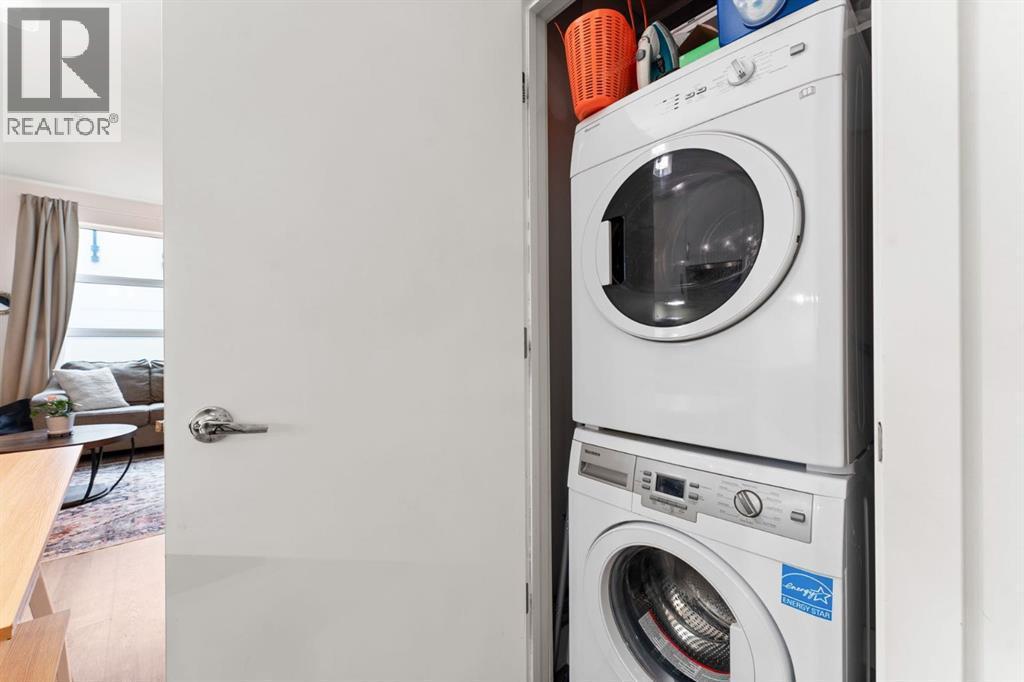 Welcome to Victory & Venture Bridgeland, offering exceptional urban living in one of Calgary’s most vibrant neighborhoods.This meticulously designed 2-bedroom, 2-bathroom condo features upscale finishes and modern conveniences. The gourmet kitchen boasts high-gloss, high-profile cabinets, quartz countertops with a stylish tile backsplash, and European integrated appliances, including a gas cooktop and built-in oven. Wide plank laminate flooring, 9’ ceilings, and modern lighting create a contemporary and spacious feel throughout.Say goodbye to bulky furniture with built-in, floor-to-ceiling wardrobes providing sleek and functional storage solutions. Enjoy the convenience of underground parking and personal storage, ensuring your belongings are secure and easily accessible.For entertaining, take advantage of two community rooftop patios featuring stunning downtown views and social amenities, perfect for hosting friends and family. Experience the perfect blend of style, comfort, and convenience in Bridgeland’s premier condo development. Don’t miss your chance to make this incredible property your new home!Contact us today to book a private viewing. (id:6769)