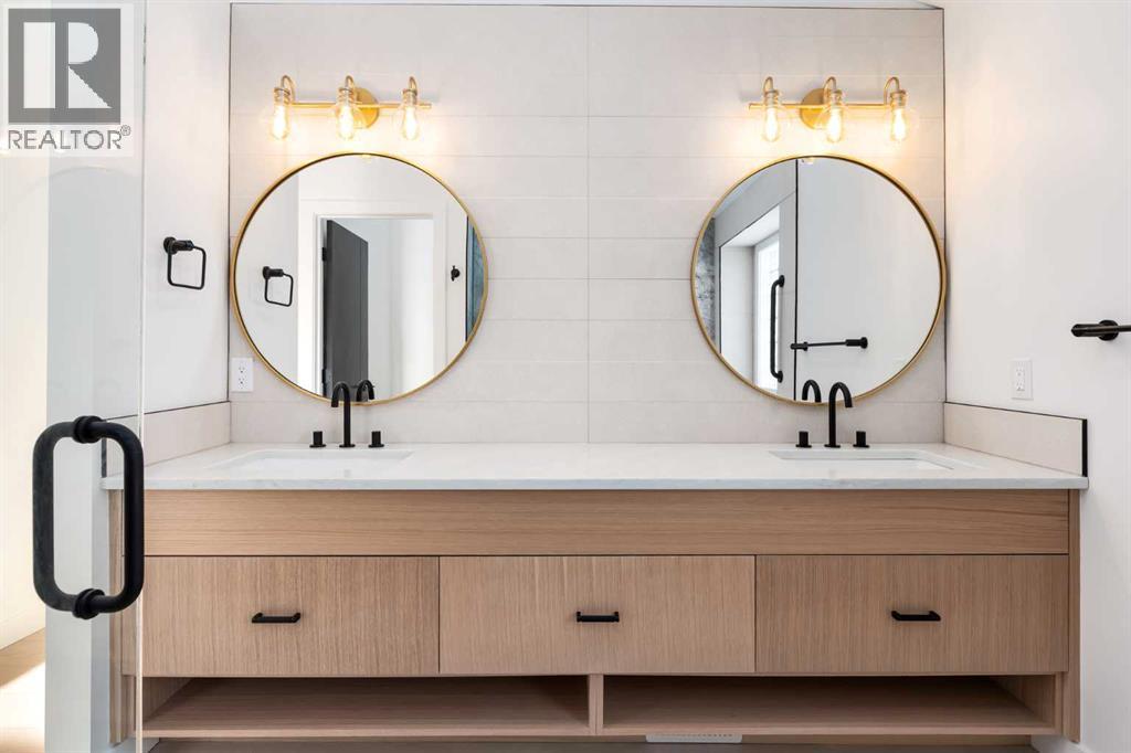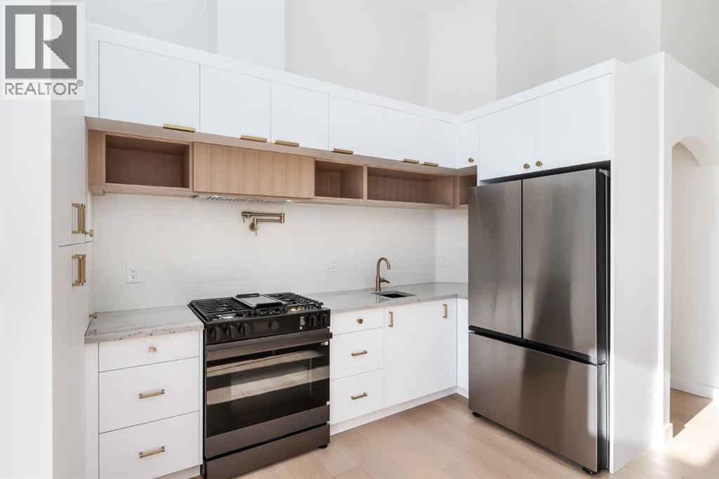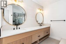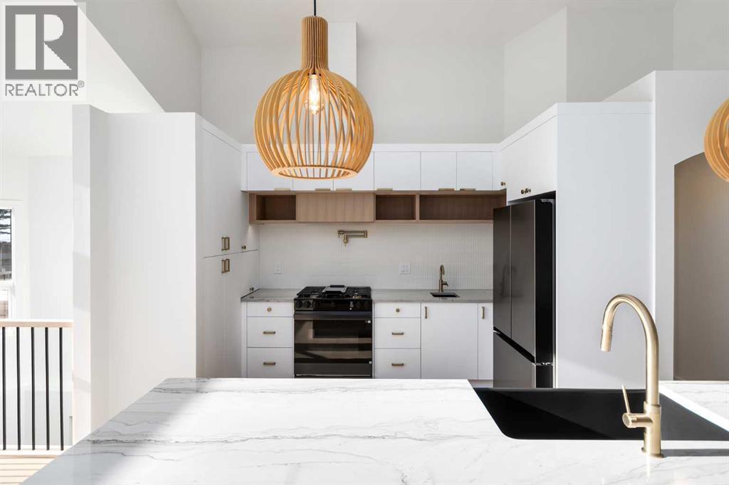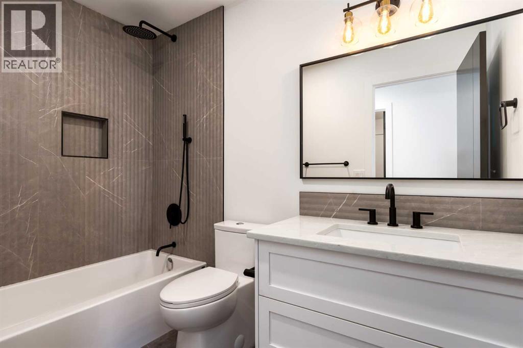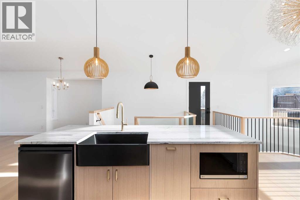 Welcome to a beautifully REIMAGINED BUNGALOW tucked into a peaceful, tree-lined setting backing directly onto a GREEN BELT in the highly sought-after community of Edgemont. Offering over 2,800 sq ft of developed living space, this FULLY RENOVATED home blends TIMELESS architecture with MODERN design in one of Northwest Calgary’s most established neighbourhoods. Step inside and you’re immediately greeted by soaring VAULTED FLAT CEILINGS and a dramatic wall of SOUTH-FACING windows that fill the home with NATURAL LIGHT all day long. The heart of the home is the STUNNING kitchen and living area, designed for both everyday living and effortless entertaining. The renovated kitchen features a large central island with QUARTZITE natural stone countertops, sleek cabinetry, modern lighting, and HIGH-END finishes that feel straight out of a design magazine. The open layout flows seamlessly into the dining and living spaces, with EXPANSIVE windows framing views of the lush backyard and green space beyond. On the main floor you’ll find a spacious PRIMARY RETREAT complete with a walk-in closet and a SPA-INSPIRED ensuite bathroom featuring a double vanity, quartz countertops, white oak cabinetry, luxurious wall & floor tiles, a beautiful soaking tub and a gorgeous glass shower framed with exquisite PORCELAIN SLABS. A conveniently located main-floor laundry/mud room sits just off the double attached garage, and a beautifully renovated full bathroom & large 2nd bedroom. The lower level has been professionally developed to include a gas fireplace and bright & spacious family/recreation room flooded with natural light from the same south-facing windows above. Two additional bedrooms, a gorgeous bathroom, 2ND LAUNDRY ROOM, an exquisite wet bar and generous storage complete this level, offering flexibility for guests, teens, or multi-generational living. The south-facing backyard is truly a PRIVATE RETREAT. Professionally landscaped, it offers a LARGE DECK, patio area, raised garden bed s, and an extensive retaining wall that creates layered flower gardens and outdoor living zones. It’s the PERFECT setting for summer dinners, morning coffee, or quiet evenings surrounded by nature. The exterior has been completely refreshed with durable Hardie board siding (completed in 2020), new shingles, soffits, fascia, eavestroughs, a new garage door (all completed in Oct/Nov 2024), and upgraded south-facing windows — giving the home strong curb appeal and long-term peace of mind. All BRAND NEW mechanicals completed in 2025 (Furnace, Hot Water Tank, Electrical Panel, PEX Plumbing Pipes, Water Softener, Humidifier). LOCATION IS EXCEPTIONAL. Edgemont is known for its quiet streets, mature trees, and access to nature. You’re just steps from beautiful ravines & Nose Hill Park, with its endless walking and biking paths, and only minutes to Market Mall, the University of Calgary, Foothills Hospital, SAIT & more. Stylish, bright, and move-in ready — this is LUXURY LIVING at its BEST!! Call to View Today!! (id:6769)