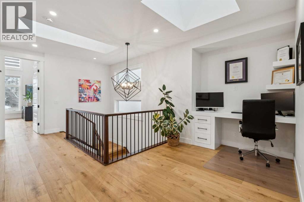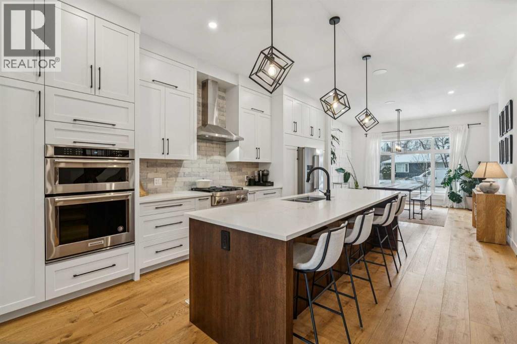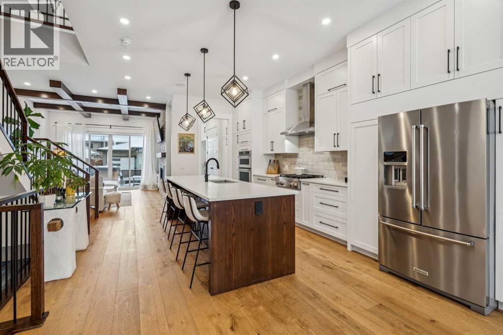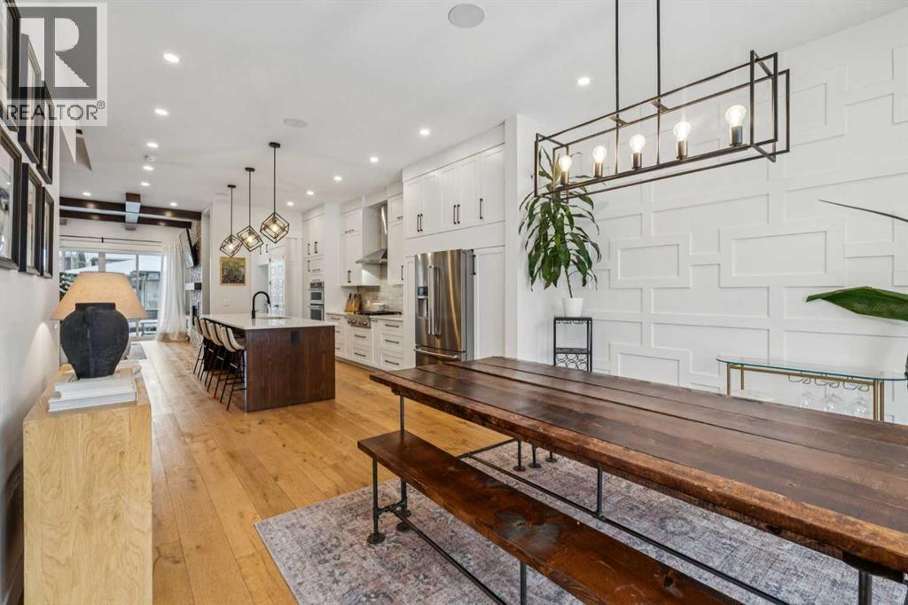 This outstanding home is ready to be yours, perfectly situated in an excellent Killarney location. The property is set on an oversized lot featuring an impressive 150 linear feet of depth, a difference that noticeably enhances both the floor plan and your lifestyle. Step inside and be greeted by a sense of grand scale and refined detail: gorgeous wide plank hardwood floors, soaring ceilings, voluminous rooms, and unmatched functionality are found throughout. The vestibule opens into a large dining area, easily accommodating every occasion from relaxed family dinners to a major Superbowl celebration. This space is tailored with bespoke lighting and wall details, adding style and texture. The gourmet kitchen will quickly become the heart of your home, offering both comfort and room for your culinary expression. Highlights include abundant storage, full-height cabinets, a premium appliance package, and a large central island. Flowing seamlessly from the kitchen, the family room is complete with a stacked marble mantle, rich coffered ceilings, and garden doors leading to your massive yard. The main floor is completed by the largest mudroom you have seen in Killarney, featuring full-height cabinets, lockers, and benches. Upstairs, three generous bedrooms, a flex space, and a dedicated laundry room provide all your second-floor essentials. The primary bedroom is truly impressive, featuring vaulted ceilings, a spa-inspired ensuite, and a large walk-in closet. The flexible space serves as an excellent home office or small media area, while the two secondary bedrooms are flooded with natural light. Finally, the basement is designed for entertainment and family life, offering a rec room perfect for a great movie, a wet bar with room for a gaming table, a large fourth bedroom, a full bathroom, and abundant storage. The outdoor space is a true highlight: an oversized backyard provides room for relaxing in your hot tub, letting your dogs run, or working on your game with the cur rent putting green. The property is completed by an incredible triple garage (one side is tandem) that is heated, adding the last layer of functionality to this exceptional home. Book your tour now. (id:6769)