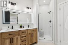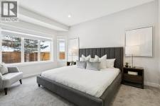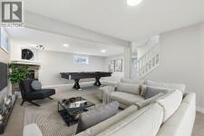 Discover unparalleled elegance in this exquisitely renovated bungalow, perfectly situated at the end of a cul-de-sac within the sought-after community of Lake Chaparral. From the moment you step inside, you are welcomed into a world of refined design and expansive living. Offering nearly 3,000 SqFt of meticulously developed space, this residence impresses instantly with soaring ceilings and beautiful wide-plank LVP flooring that flows throughout the open-concept main floor. The kitchen is a true showpiece, featuring an abundance of cabinetry, a corner pantry, and a striking quartz waterfall island that offers generous seating. A suite of premium stainless steel appliances, including a built-in oven and a versatile convection oven/microwave, is complemented by stylish black subway tile and designer lighting, creating a sophisticated and functional space for both everyday living and entertaining. The main floor also hosts a large, bright formal dining room with charming bay windows overlooking the front porch, and a large private office/den that captures tranquil views of the adjacent green space. The owner's retreat overlooks the backyard, complete with a walk-through closet leading to a luxurious en-suite bathroom. This spa-like space features a large soaker tub with a custom tile surround, a dual vanity, a separate shower, and the added comfort of heated flooring and a heated/LED vanity mirror. The main level is thoughtfully completed with a half bathroom, a laundry room with garage access, and ample closet space. Descend to the fully finished basement to find a vast living and recreation area, centered around a cozy gas fireplace. This level also includes three large (sound proofed) bedrooms with generous closet space and a full bathroom, providing ample room for family and guests. The home’s infrastructure has been meticulously updated, including new attic insulation, a new electrical panel, AC, a HE furnace, and a newer water tank, along with a precautionary rad on fan reduction system for ultimate peace of mind. Step outside into the professionally landscaped, west-facing backyard, completed in the summer of 2025. A private gate provides direct access to a large green space, offering an idyllic setting for a walk while soaking in breathtaking views of the Rocky Mountains. This exceptional property offers a lifestyle of convenience and leisure, with four seasons of activities at the lake and easy access to Stoney Trail and the premier amenities at The Gates of Walden. This is more than a home, it's an opportunity for a life of quiet luxury and natural beauty. (id:6769)
