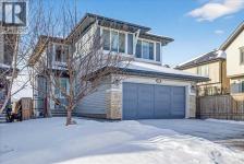 You’ll be impressed the moment you step into this beautifully designed home featuring a spacious and functional floor plan with 3 large bedrooms and 2.5 bathrooms. The main floor showcases 9-foot ceilings, rich hardwood flooring, and a large living room complete with a cozy gas fireplace—perfect for relaxing or entertaining. The stunning kitchen is a true highlight, with attractive cabinetry, granite countertops, a walk-in pantry, and a huge island with breakfast bar. The adjacent dining area features patio doors that open to the rear deck, ideal for indoor-outdoor living (sunny west exposure). The main floor also includes a home office/computer area and a spacious mudroom with convenient access to the attached garage. The upper level is equally impressive, featuring a large family room, three generous bedrooms, and a convenient laundry room with extra storage space. The primary Bedroom is a perfect place to relax with large windows with city views—enjoy the night lights! The luxurious 5-piece ensuite includes a deep jetted tub, separate shower, dual sinks, and a large walk-in wardrobe closet. The basement is ready for future development, with framing already started, it offers plenty of additional storage space. This home is in an excellent location close to parks, walkways, Creekside Shopping Centre and Evanston Towne Centre. You’ll appreciate the easy access to major roadways throughout the city. This is the perfect place to call home! (id:6769)