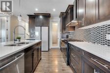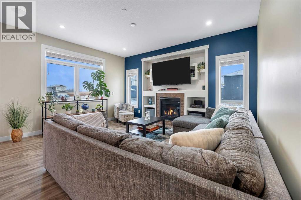 Welcome to this exceptional family home in the sought-after community of Lakewood, Strathmore, where refined living meets everyday comfort, just 30 minutes from Calgary. Perfectly positioned on a corner lot, and offering over 2,900 sq. ft. of fully developed living space, this thoughtfully designed home delivers both style and function for modern family life. The main level showcases an airy, open concept layout with 9 ft. ceilings, laminate flooring, and an abundance of windows that bathe the space in natural light. At the heart of the home, the chef-inspired kitchen impresses with a large central island, sleek quartz countertops, ceiling-height cabinetry, stainless steel appliances, and a walk-through pantry, ideal for entertaining while keeping family life organized. The living room is warm and inviting, centered around a gas fireplace with built-ins, creating a perfect gathering space. A private main floor den behind double French doors offers an ideal home office, homework space, or quiet retreat. A powder room and a spacious mudroom with built-ins complete the level, thoughtfully designed for busy families. Upstairs, the home continues to impress with a large bonus room, perfect for family movie nights, along with three generous sized bedrooms, two full bathrooms, and the convenience of upper-level laundry. The primary suite is a luxurious retreat, featuring a walk-in closet and a spa-inspired 5-piece ensuite with dual sinks, a deep soaker tub, and an oversized walk-in shower. The fully finished lower level extends your living space with a large family room, two additional bedrooms, and a 3-piece bathroom, ideal for guests, teens, or growing families. Step outside to a fully landscaped yard, backing onto a walking path that leads directly to a park and green space. Scenic ponds just across the street provide the perfect setting for evening strolls. Additional highlights include central air conditioning, fresh paint throughout, a new gas stove and refrigerator (2025), dishwasher and built-in microwave (2026), and newer front load washer and dryer, making this home truly move-in ready. (id:6769)