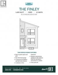 NO NEIGHBOURS BEHIND—JUST SUNRISE ON THE POND AND A REAR DECK THAT ACTUALLY GETS USED. This new, never-lived-in half duplex backs directly onto the greenspace and community storm pond in Starling (NW), offering open sky, long pathway views, and more breathing room than most new builds. Instead of a back fence, you get a quiet outlook that shifts with the light.Inside, the main floor is easy and efficient with 9’ ceilings, luxury vinyl plank flooring, and clean sightlines from the kitchen, through the dining area, to the rear view. The kitchen is designed to work hard, featuring QUARTZ COUNTERS, 42" UPPER CABINETRY, a CHIMNEY HOOD FAN, BUILT-IN MICROWAVE, and an electric range with a GAS LINE ROUGHED-IN. Groceries land on the island, meals move to the table, and the rear deck takes over when the weather cooperates.Upstairs, three well-proportioned bedrooms and two full baths keep mornings moving smoothly, with laundry exactly where it should be—on the upper level. The FRONT-FACING PRIMARY BEDROOM is set away from hallway traffic with its own ensuite and walk-in closet. The layout is efficient, easy to furnish, and simple to maintain.Downstairs, a full SUNSHINE BASEMENT brings in more natural light than a typical below-grade space, keeping future options bright and flexible. There’s a SEPARATE SIDE ENTRY, 200-AMP electrical service, and a rough-in for a future bath—ideal for a gym, media room, or guest/teen zone when the timing makes sense. Out back, a DOUBLE DETACHED GARAGE off a paved lane keeps parking and storage straightforward, with a BBQ gas line already roughed in for grilling on the deck.Starling is built for people who like to step outside. Pathways loop the storm pond and connect to PARKS, GREENSPACE, and an ENVIRONMENTAL RESERVE, with planned gathering areas and play spaces throughout. Quick access to 14 St NW and Stoney keeps daily errands easy—while this lot’s pond-side setting keeps things quiet at home.If mornings on the deck and evenings on the pathways sound like your kind of routine, THIS ONE’S WORTH SEEING. Book a showing and come experience how it lives—practical, peaceful, and special where it counts.• PLEASE NOTE: Photos are of a finished Showhome of the same model – fit and finish may differ on finished spec home. Interior selections and floorplans shown in photos. (id:6769)