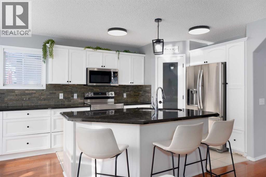 Tucked away on a quiet street in the heart of Chaparral, just a short walk to the lake, this beautifully maintained and fully finished home is the perfect place for your family to grow and make memories. Set on an oversized pie-shaped lot with paved lane access, the home has been freshly painted, and nicely updated, allowing you to move in with confidence and ease.With over 2,700 sq. ft. of developed living space, the bright and inviting floor plan is filled with natural light thanks to an abundance of extra windows. The kitchen is a true family hub, showcasing rich dark granite countertops, crisp white cabinetry, and sleek stainless steel appliances—both stylish and practical for everyday life.A main-floor office or den provides a quiet space for work or homework, while the spacious bonus room with vaulted ceilings and built-in speakers is ideal for movie nights or playtime. Downstairs, the family room is designed for fun, featuring a media room complete with an entertainment unit, hidden projection screen, and surround sound—sure to be a favorite gathering spot for kids and adults alike.With four bedrooms and four bathrooms, there’s plenty of room for family, guests, and everything in between. Step outside to enjoy the large backyard, thoughtfully designed with a two-tiered deck (half covered), mature trees, privacy screening, and newly updated maintenance-free fencing—perfect for outdoor entertaining, relaxing evenings, and kids at play.Additional highlights include a nicely maintained extra-wide driveway with added concrete on both sides and a fantastic interior community location close to the lake, elementary school, and playground. With quick access to Macleod Trail, Stoney Trail, and nearby amenities, this is a wonderful opportunity to enjoy the lake life in one of Calgary’s most sought-after communities. This is a place your family will be proud to call home. (id:6769)