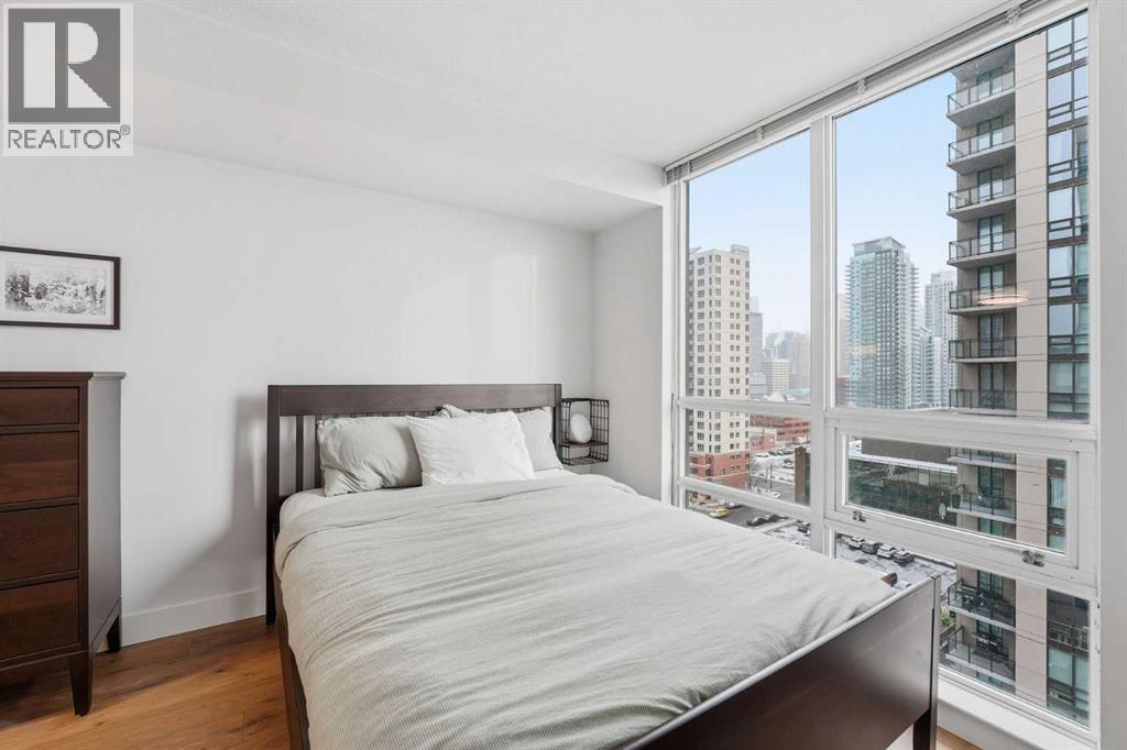 *OPEN HOUSE SUN FEB 8TH 1:00PM-3:00PM* This beautiful WELL-MAINTAINED condo offers a stylish OPEN - CONCEPT layout designed for both everyday living and entertaining. The kitchen features granite countertops and an oversized eating bar that flows seamlessly into the dining nook and living area. ENGINEERED HARDWOOD flooring throughout the main living spaces adds a modern yet HOMEY finish. Step outside to your covered balcony with solid sides — a PRIVATE outdoor space you can truly enjoy year-round. Inside the bedroom, LARGE WINDOWS showcase downtown city lights, while the WALK-THROUGH CLOSET leads to the cheater ensuite. This unit includes a NEW UPGRADED BOSCH IN-SUITE washer/dryer set, AIR CONDITIONING, a UNDERGROUND TITLED PARKING STALL, and a STORAGE LOCKER located in the heated underground parkade. The building is exceptionally WELL RUN and offers a full suite of amenities, including 24-HOUR CONCIERGE ensuring security, a fully equipped GYM, party room, large BIKE STORAGE AREA, guest suites, and underground VISITOR parking. Located in one of Calgary’s most vibrant inner-city neighbourhoods, you’re surrounded by some of the city’s best restaurants, cafés, and nightlife, with trendy 17th Avenue just steps away. CO-OP is only ONE BLOCK OVER for everyday convenience and groceries, while nearby parks and the Bow River pathway system make it easy to enjoy an active, outdoor lifestyle. It also has excellent access to transit and major routes — including Bow Trail for quick escapes west to the mountains. This is a well-maintained condo in a prime inner-city location, offering lifestyle, convenience, and long-term value. (id:6769)