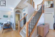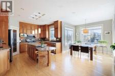 TThis beautifully appointed two-storey home makes a lasting impression with its timeless design, thoughtful layout, and seamless blend of elegance and everyday comfort. With a fully finished walkout basement, a meticulously renovated upper level, and a serene backyard backing directly onto a walking path, this home is perfectly suited for families and entertainers alike. The front entrance welcomes you with a striking open-to-below foyer, creating an immediate sense of space and light. Natural light flows effortlessly between levels, setting a refined yet inviting tone throughout the home. Just off the entry, the formal dining room offers a sophisticated setting for hosting dinner parties, holiday gatherings, or special celebrations, while remaining versatile enough for a home office or sitting room. Hardwood flooring spans the main level, complemented by air conditioning for year-round comfort. At the heart of the home is a beautifully designed kitchen featuring granite countertops, stainless steel appliances, ceiling-height cabinetry, a spacious corner pantry, and a large central island ideal perfect for meal prep. A window above the sink overlooks the backyard, bringing in natural light and reinforcing the home’s connection to its outdoor surroundings. The bright eating nook sits adjacent to the kitchen and offers direct access to the back deck—perfect for everyday dining or effortless indoor-outdoor living. The open-concept living room features a cozy fireplace, creating a warm focal point for relaxing evenings or entertaining guests. A conveniently located two-piece powder room and main floor laundry add to the home’s practical appeal. The fully fenced backyard is a true retreat, backing onto a walking path and framed by mature trees for added privacy and tranquility. From the upper deck to the lower patio accessed via the walkout basement, this outdoor space is ideal for entertaining, relaxing, or enjoying nature year-round. Upstairs, a spacious bonus room wit h built-in desk and charming window seat provides a versatile family gathering space. Three generous bedrooms share a beautifully renovated four-piece bathroom, while the primary suite offers a peaceful sanctuary with mountain views, a walk-in closet, and a fully renovated five-piece ensuite featuring dual vanities, a soaking tub, stand-alone shower, and private water closet. The fully finished walkout basement expands the living space with a large family and recreation room, an additional bedroom, and a four-piece bathroom—ideal for guests, extended family, or flexible living arrangements. Thoughtfully designed and beautifully maintained, this home offers an exceptional balance of space, style, and setting—where everyday living feels elevated and every detail supports a refined, comfortable lifestyle. (id:6769)