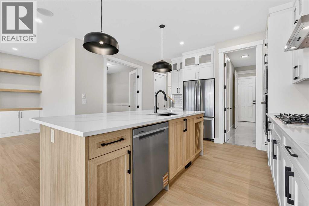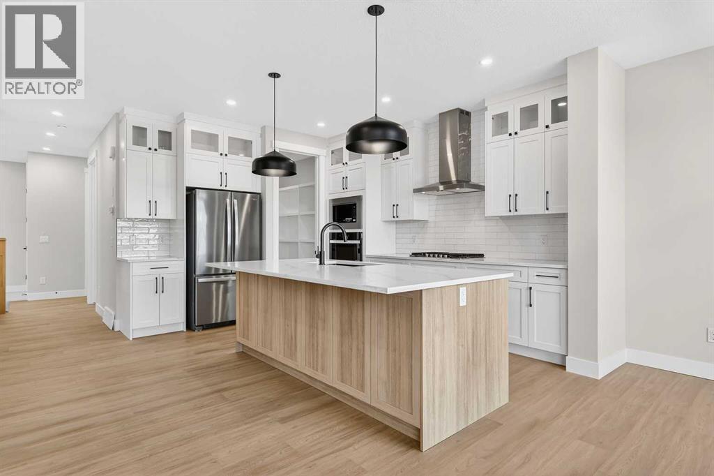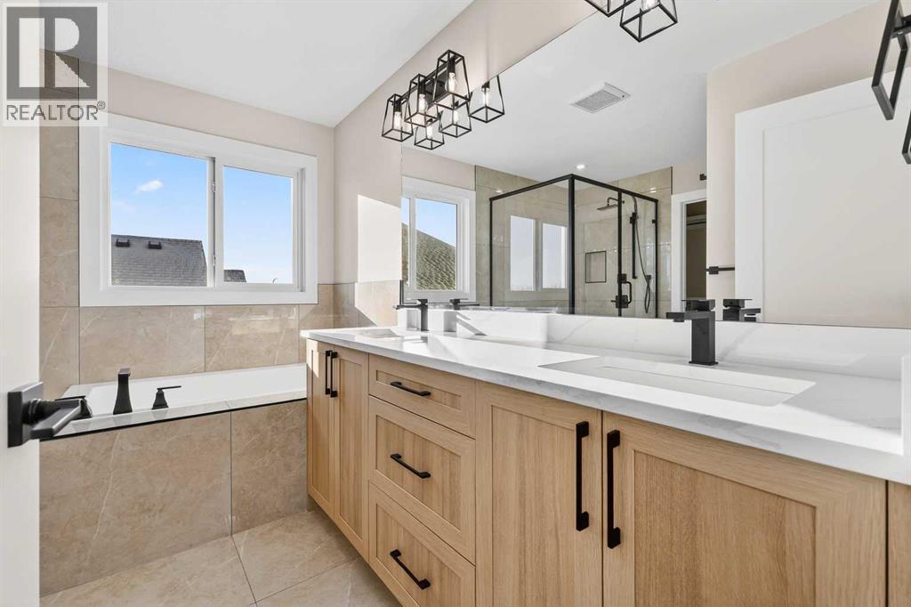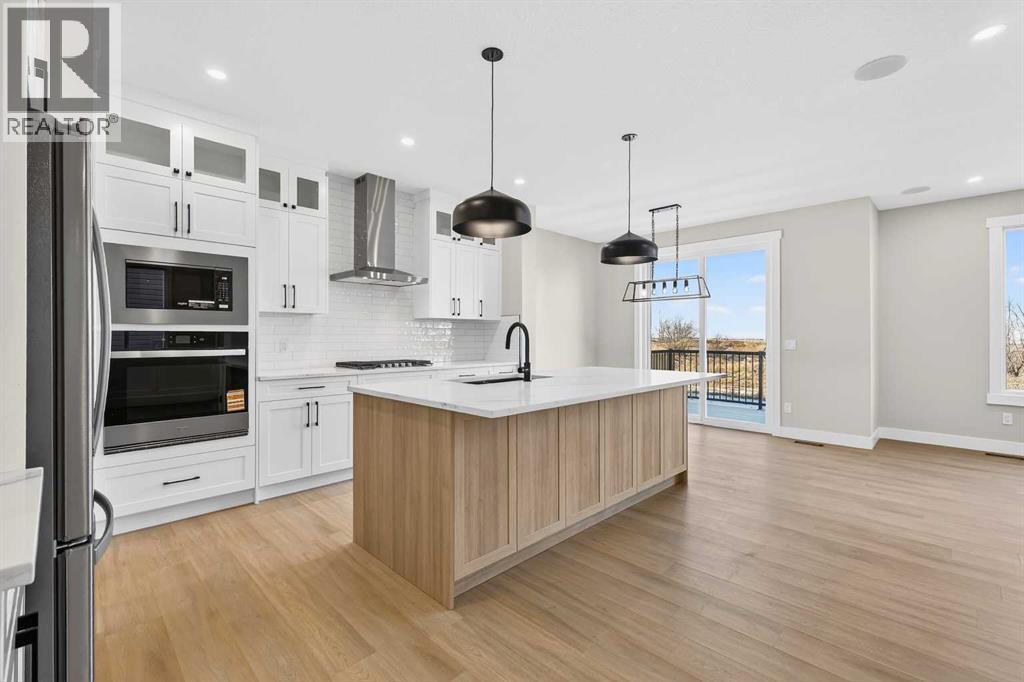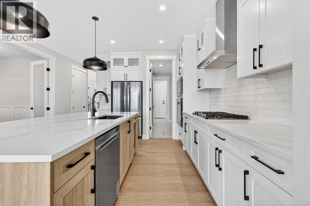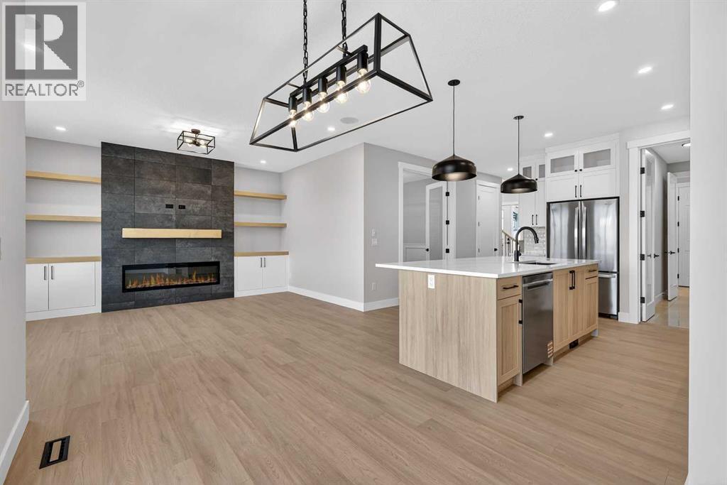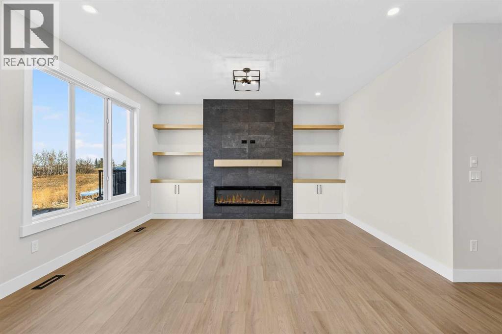 Welcome to 180 Wildrose Drive, nestled in the vibrant and family-friendly community of Wildflower, where scenic pathways, beautiful parks, and peaceful living come together. This stunning, move-in ready home welcomes you with a spacious entryway and soaring ceilings that flood the space with natural light. The main floor features durable LVP flooring complemented by ceramic tile in key areas, blending style with everyday practicality. The open-concept layout is ideal for gathering with loved ones and creating lasting memories. The kitchen is beautifully appointed with ceiling-height cabinetry, quartz countertops, a gas cooktop, built-in oven and microwave, and a gorgeous west-facing view. With 9 ft ceilings on both the main floor and basement, along with 8 ft doors throughout, the home feels bright, airy, and elevated. The living room is a true showstopper, highlighted by a striking feature wall with an electric fireplace and sleek tile surround, creating the perfect space to relax and unwind. Upstairs, the bonus room boasts vaulted ceilings and offers a versatile space ideal for board game nights, a toy room, or family movie nights. The primary suite serves as a private retreat, complete with a tray ceiling, designer feature wall, and a luxurious 4-piece ensuite showcasing a soaker tub, a spacious walk-in shower, and heated floors for year-round comfort. The walk-in closet features custom MDF shelving, thoughtfully designed for both organization and style. Step outside to a private backyard with no rear neighbours, offering exceptional peace and privacy. The yard is not landscaped, providing a blank canvas to design the outdoor oasis of your dreams, whether that is a garden, patio, or play space. The front yard includes sod and a tree provided by the builder, giving the home instant curb appeal. The garage is equipped with a gas line, making it easy to add a heater in the future for added comfort during colder months. A separate side entrance to the basement offers excellent potential for future development and customization to suit your lifestyle. Contact your agent today! (id:6769)