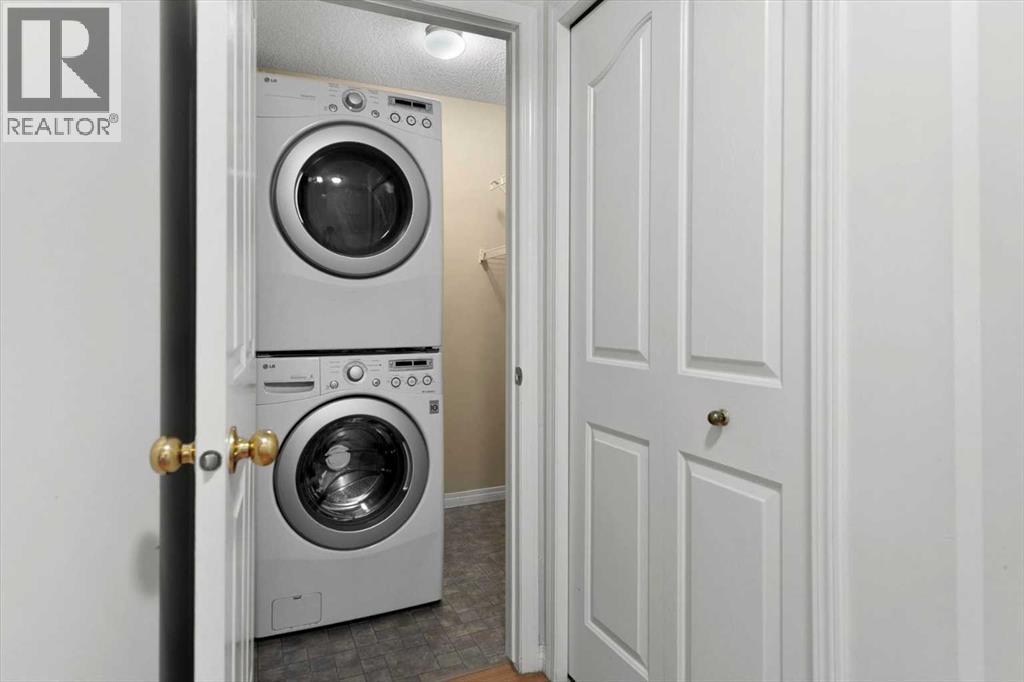Welcome to this beautiful 2-bedroom, 2-bath unit featuring underground parking, fresh paint (2022), and vinyl flooring (2015). Large windows brighten the open-concept main living area, creating a spacious and inviting atmosphere.The kitchen is equipped with NEWER stainless steel appliances, and the east-facing balcony—with glass railing, on-deck storage shed, and a gas line for your BBQ—provides the perfect outdoor extension of your living space.The primary bedroom offers a walk-through closet with built-in storage shelves and a private ensuite. A second generously sized bedroom and a 4-piece bathroom complete the interior layout.This building includes an impressive range of amenities: a fully equipped gym, a movie theatre, a games room, a library, a social club, and even an on-site hair salon. Access to community amenities is available for just $25 per month.Ideally located, you’re only minutes from walking paths, tennis and volleyball courts, the train station, shopping centres, the YMCA, and have quick access to both Crowchild Trail and Stoney Trail. (id:6769)