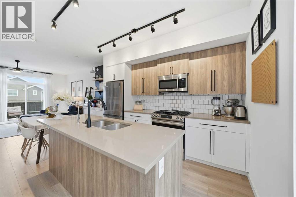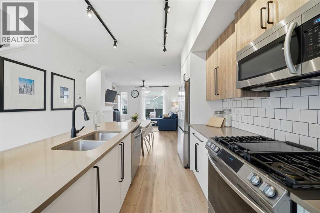 Welcome to this charming, meticulously maintained Walden townhome! Offering 2 bedrooms, 2.5 bathrooms, and single garage with driveway. Step inside to 9-foot knockdown ceilings that create a bright, spacious main floor. The open-concept layout seamlessly connects the living, dining, and kitchen areas, with large windows bathing the space in natural light and showcasing high-quality finishes. The chef-inspired kitchen boasts quartz countertops, stainless steel appliances, ample cabinetry, and a breakfast bar—perfect for casual dining or entertaining. Upstairs, you’ll find generously sized bedrooms, including a primary suite with a large closet and ensuite featuring modern fixtures and dual vanities. Located in the vibrant community of Walden, close to picturesque surroundings and essential amenities, this move-in-ready townhome combines modern style with functional comfort. Don’t miss your chance to experience the best of Walden living—schedule your viewing today! (id:6769)