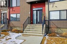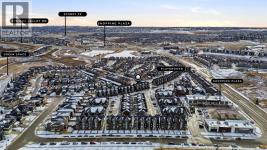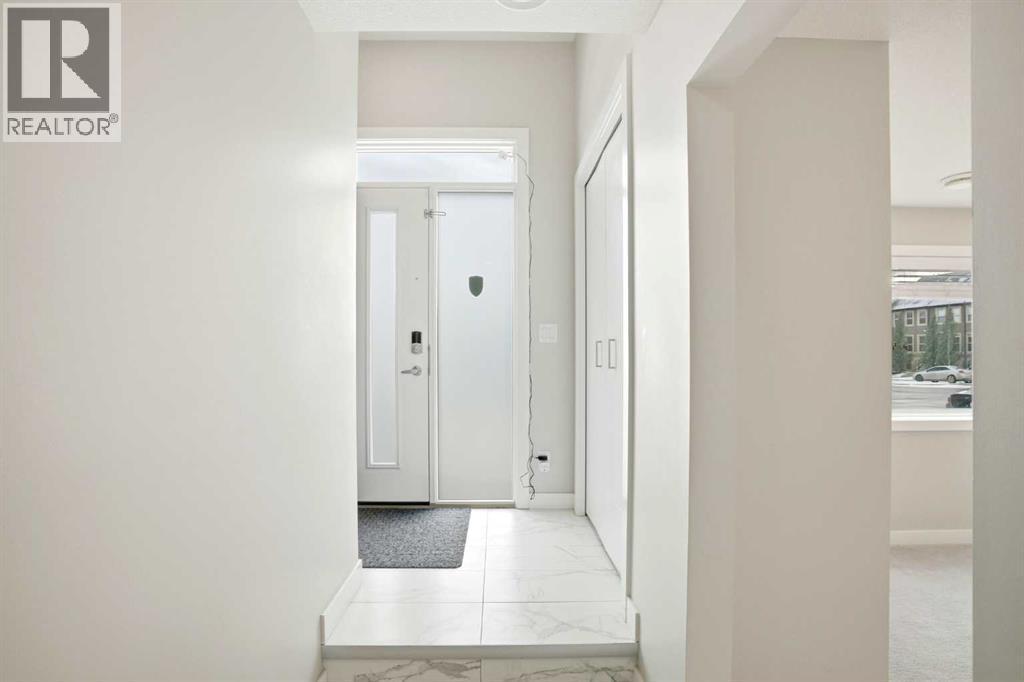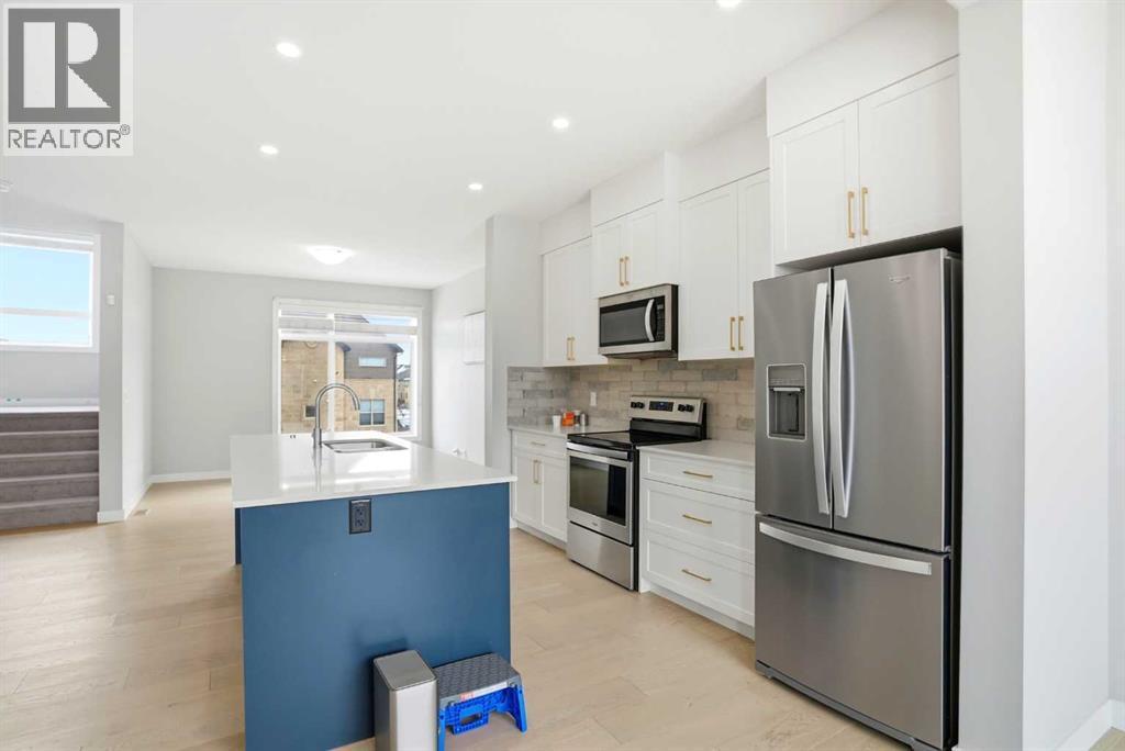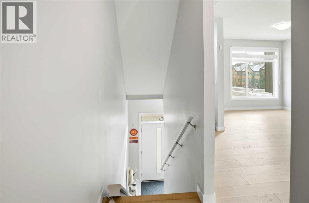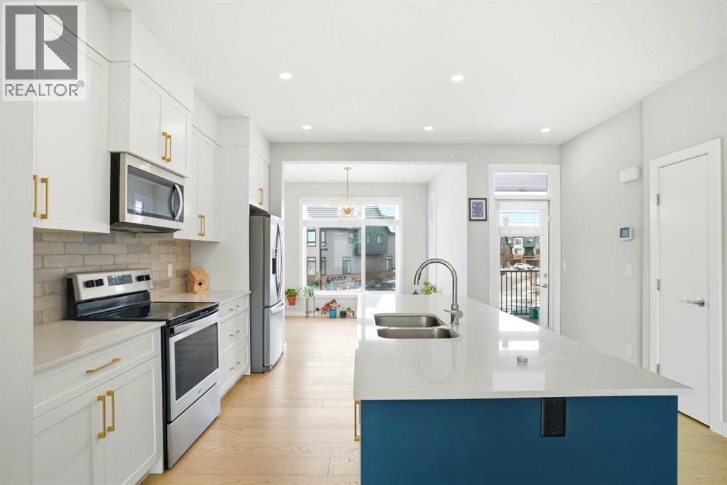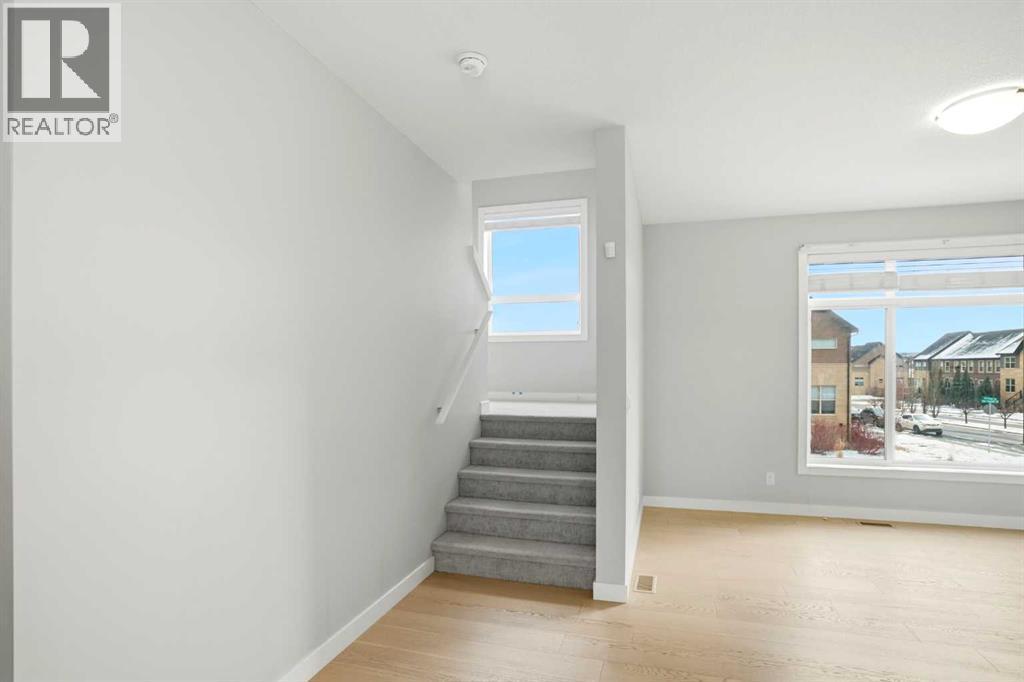 This stunning 3-storey, 3-bed, 2.5-bath former show home delivers contemporary elegance with premium upgrades throughout. Move-in ready and meticulously maintained.CHEF'S KITCHEN & OPEN LIVING Gourmet kitchen with 2-tone cabinetry, quartz counters, subway tile backsplash & Samsung stainless appliances. Open-concept design flooded with natural light. Covered balcony with gas BBQ line for effortless entertaining.PRIMARY SUITE SANCTUARY Dramatic vaulted ceilings, expansive windows, walk-in closet with barn door & spa-inspired ensuite featuring oversized shower and quartz double vanities.PREMIUM FEATURES ? Heated double-car garage ? Ground-floor flex room (perfect home office) ? Upgraded vinyl plank & laminate flooring ? Tankless water system & LED lighting ? Upper-level laundry (Whirlpool washer/dryer included). Chair lift installed (can be removed at buyer's request).UNBEATABLE LOCATION Walk to Symons Valley Nature Reserve trails. Minutes to Sage Hill shopping districts. Quick access to Symons Valley Road, Deerfoot & Stoney Trail. Low condo fees include lawn care & snow removal.Show home quality. Turnkey perfection. Prime location. This one won't last. (id:6769)