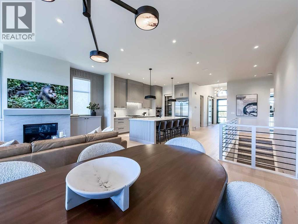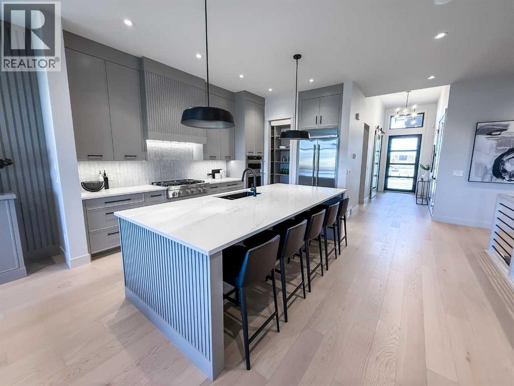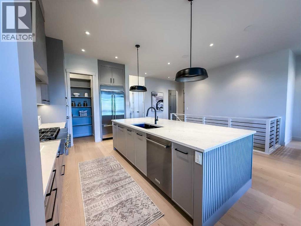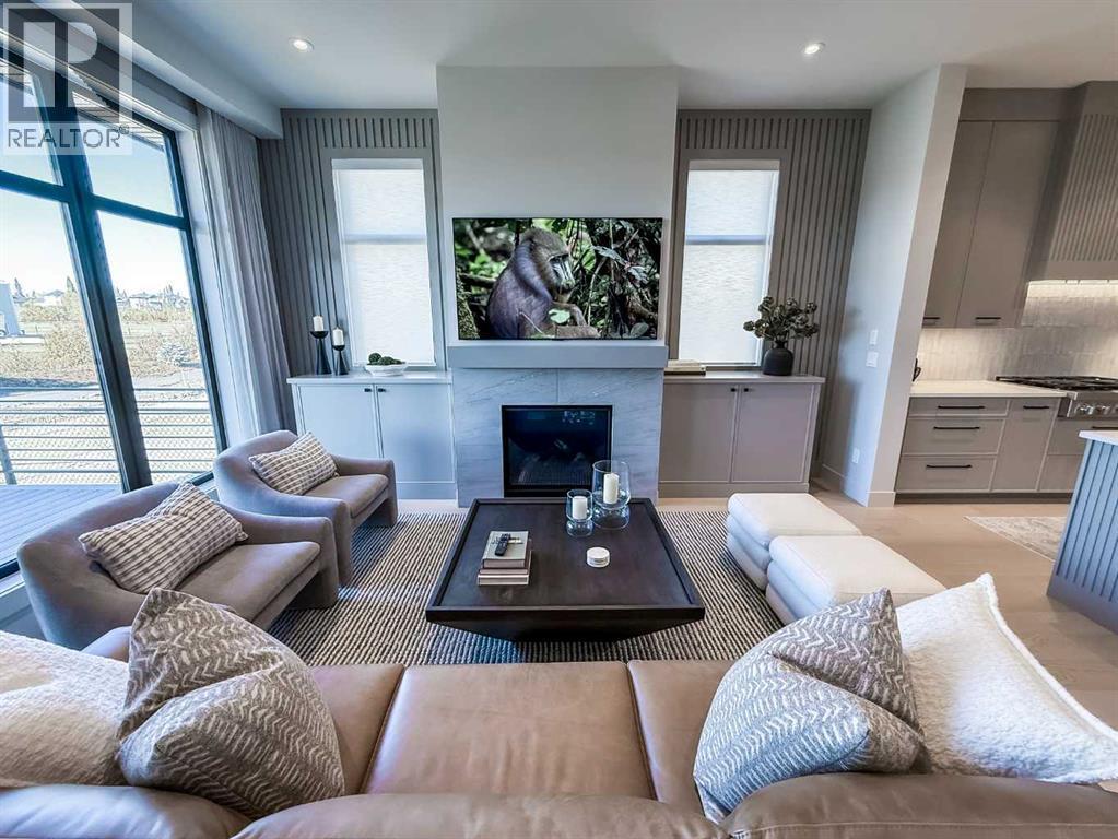 Nestled in the heart of Serenity at Heritage Pointe, this luxurious 3 bedroom, 2.5 bath townhome with the Sydney floorplan has been carefully crafted by RareBuilt Homes & offers over 3200 sq ft of exceptional living space. The open concept main floor impresses with engineered wide plank hardwood, custom tile detailing, 10’ ceilings, and a spacious great room with large sliding doors that open to a covered rear deck and private fenced yard. The chef inspired kitchen is equipped with a full KitchenAid appliance package, including a six burner gas cooktop, custom hood fan, refrigerator/freezer, dishwasher, and built in oven with convection microwave. A generous island, ample storage, and thoughtful layout make this kitchen ideal for both everyday living and entertaining. A stylish home office with beam detailing adds both character and functionality. The primary suite provides a serene retreat, complete with a spa inspired 5 piece ensuite featuring heated floors, a freestanding soaker tub, an oversized shower, and a custom walk in closet. The fully finished basement extends the living space with a large recreation room, two additional bedrooms, a full bath, and a roughed-in theatre room that can be modified to wherever your imagination takes you. Additional highlights include a 3 stop elevator, tilt and turn triple glazed windows, 6 standard solar panels, a high efficiency furnace, heat pump, air conditioning, and radiant in floor heating—ensuring year round comfort and energy efficiency. Parking is effortless with a fully finished and painted oversized double attached garage complete with epoxy flooring, aggregate driveway and EV charger readiness. Enjoy the freedom of full landscape maintenance and snow removal plus close proximity to Heritage Pointe Golf Club, LaunchPad Golf at Heritage Pointe & easy access to Calgary or Okotoks via highway 2 or 2A. (id:6769)