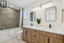 No CONDO FEES! Extensively Renovated with an upper addition, adding a full bathroom and extending the Primary Suite on the upper level. This Beautiful half duplex on one of Garrison’s most desirable streets, featuring a sunny west-facing backyard and exceptional INNER-city lifestyle. Thoughtfully redesigned with high-end finishes, new drywall Pot lights Brand new Kitchen abundant natural light, and am OPEN Floorplan ideal for modern living. Steps to parks, river pathways, Sandy Beach, and minutes to Marda Loop, Altadore, and downtown. Located on one of the most desirable streets in Garrison, just footsteps from the park and featuring a sun-filled west-facing backyard. Natural light flows beautifully throughout the home, showcasing a thoughtful, newly redesigned, highly functional floorplan ideal for elevated lifestyle living. The upper level offers two generous bedrooms, including an enlarged primary retreat, complemented by a spacious shared bathroom with Gorgeous tile and a deep Soaker tub! The main level is exceptional, featuring elegant two-tone cabinetry, expansive quartz countertops, designer tile, and an abundance of natural light, all grounded by rich Canadian hardwood flooring that creates a warm yet sophisticated setting for entertaining and hosting. Structural beams added in order to provide an Open concept Living/kitchen/dining area. The living room overlooks the private, sunny west backyard and offers seamless access to the double garage, and LARGE FULLY FENCED YARD, enhancing both comfort and convenience. A stylish powder room with a custom vanity and back access closet add on the essentials! The fully developed basement (Media area/games area) carpeted for comfort and MASSIVE WINDOWS enhance the space with light, creating an airy and welcoming atmosphere, a third bedroom, a beautifully appointed walk-in tiled shower with glass enclosure and designer accents, additional storage, and all new mechanical systems including a new furnace, updated ele ctrical, on-demand hot water, new washer and dryer, and a new water line connection to the city. Roof shingles are approximately three years old. Truly a GEM! (id:6769)