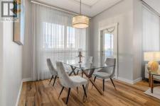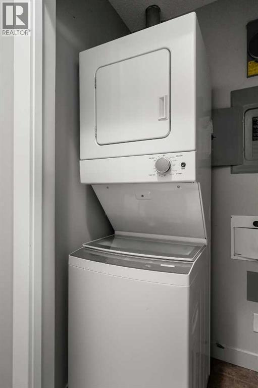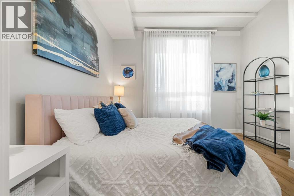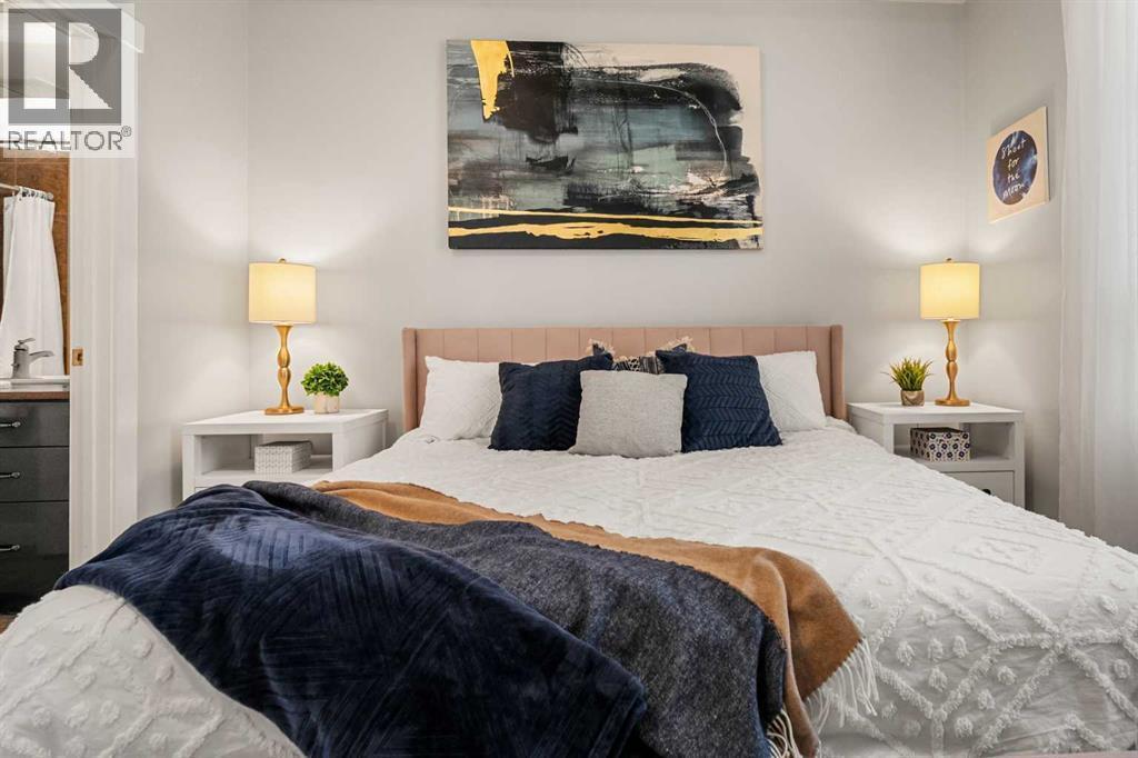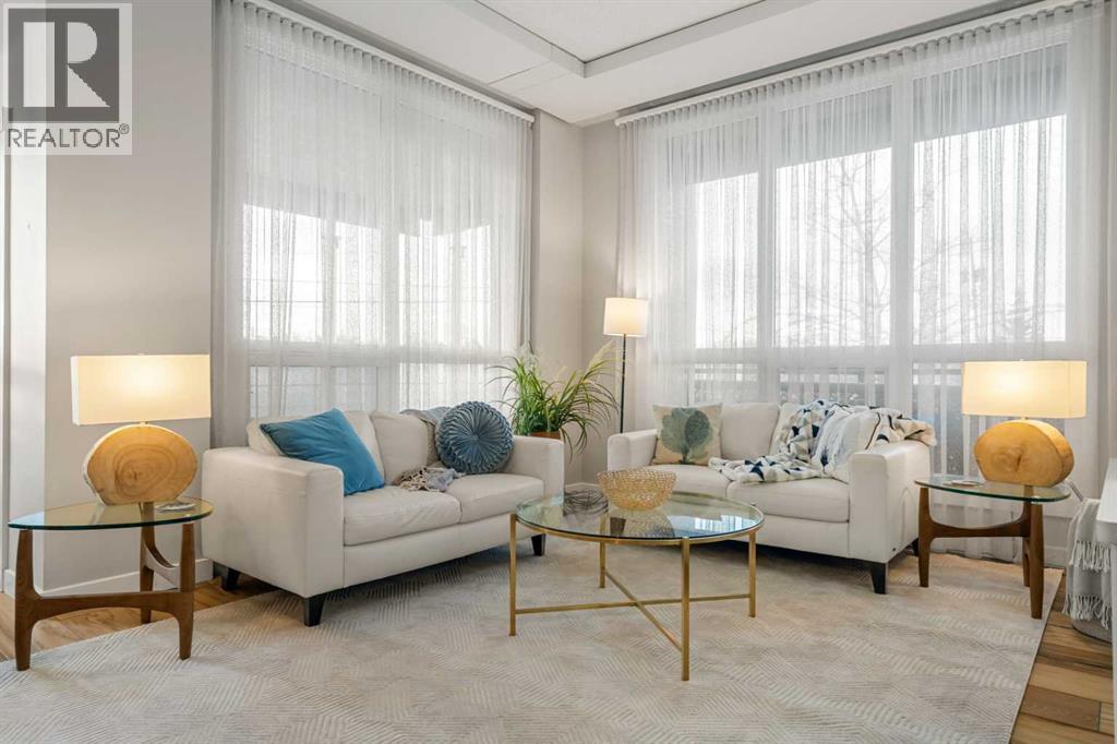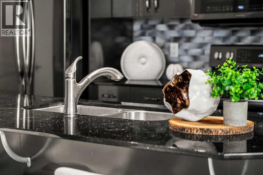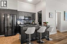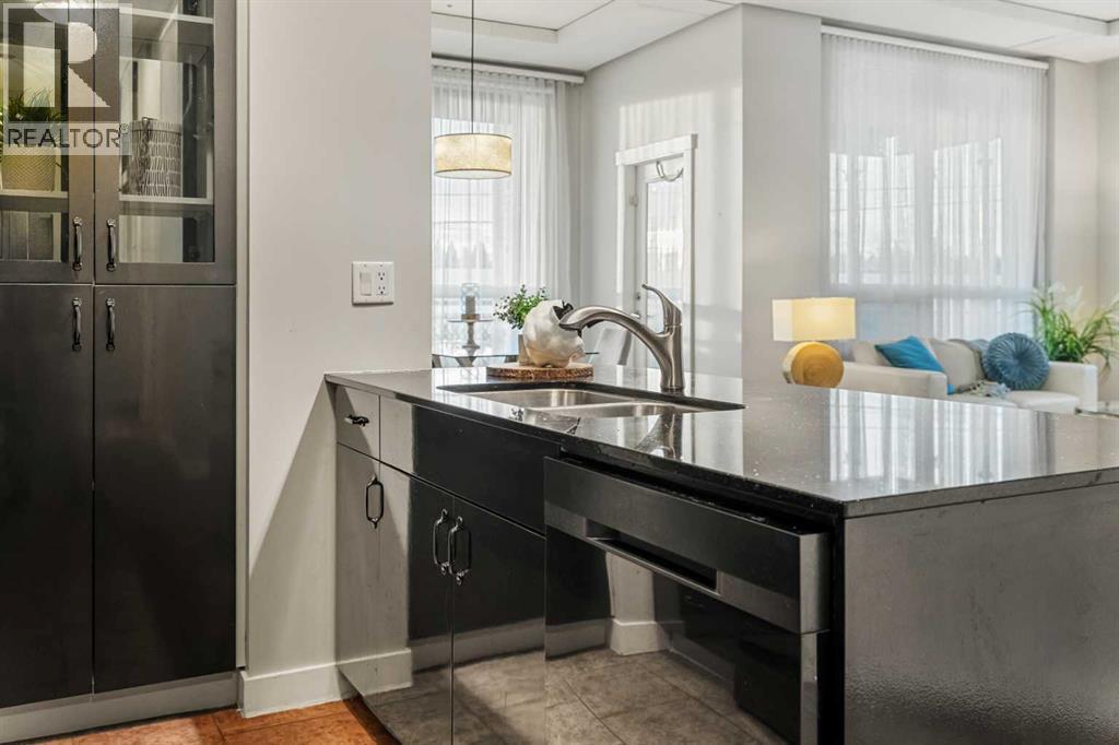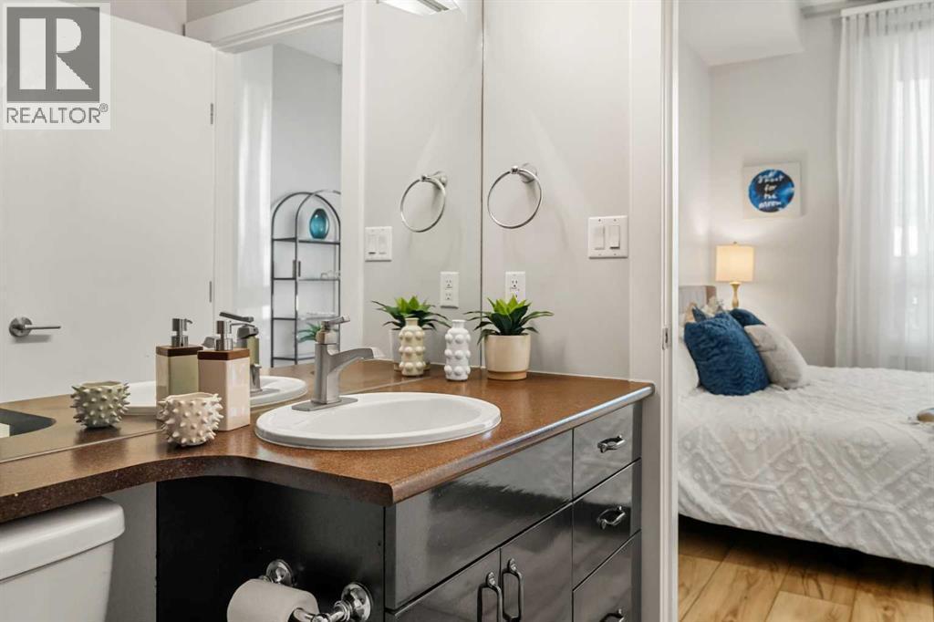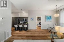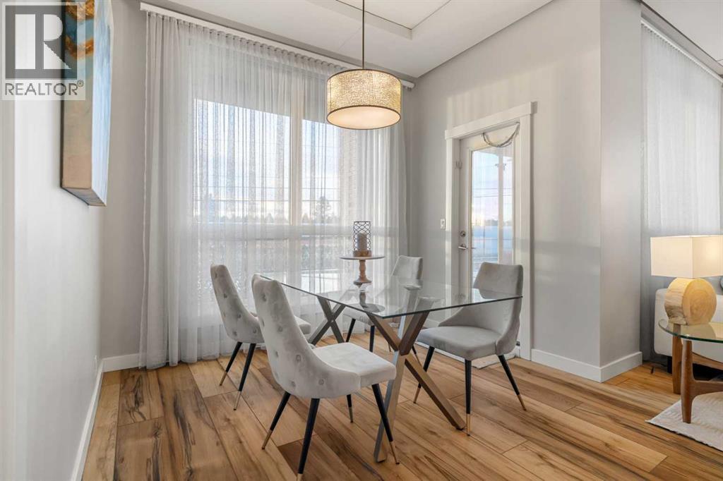 Welcome to this beautifully upgraded 2-bedroom, 2-bathroom , 2 parking stall - corner unit in the sought-after London at Heritage Station. Located on the second floor with 10-foot ceilings and a wrap-around balcony, this home offers a rare blend of space, light, and convenience and has over $50,000 in upgrades and renos— all in a concrete building with unbeatable access to amenities. This bright corner suite features windows facing north and west, allowing the home to be filled with natural light throughout the day. The open-concept layout is enhanced by wide-plank, high-end luxury vinyl plank flooring and stylish modern finishes.The kitchen has been thoughtfully updated with Newer gunmetal black appliances (all replaced within the last 3–4 years), including an electric stove with double oven option, refrigerator, microwave hood fan, and dishwasher. The cabinets have been updated with double coat of paint and new hardware in the kitchen and in both bathrooms.  Beautiful gold-flecked black granite countertops, a tile backsplash, and a double sink complete the space, making it as functional as it is striking. A new designer dining room light fixture adds a touch of elegance to the adjoining dining area that is more house sized than a typical condo perfect for family dinners or entertaining. Comfort and style continue throughout the home with automatic blinds in the bedrooms and dining room, custom drapery on all windows, new entry and primary closet doors, and additional storage above the closets in both the primary bedroom and front entry. The front entry allows for a desk space if desired or a added space for you favorite shoe collections. The living room has lots of light and lots of space for big sectionals and a large TV if desired. The primary bedroom has room for a king sized bed, lost of extra storage added above a large closet, with a lovely 4 pc ensuite. With the other bedroom on the opposite side of the unit its spacious giving everyone occupant privacy. T he unit also includes a stacked washer and dryer and a tankless hot water system for added efficiency.Step outside onto your wrap-around balcony, perfect for enjoying morning coffee or evening sunsets with open sky views and great airflow from the corner positioning on the NW side. One of the biggest highlights of living at London at Heritage Station is the direct indoor access to shopping and services — no need to step outside to grab groceries, coffee, or daily essentials. Plus, you’re just steps to the C-Train station, making downtown commutes and city access effortless. Modern upgrades, generous storage, premium parking, and unmatched convenience — this is condo living at its best. Pet dog, cat or bird allowed with approval - The building has a dog run area on the north side of the building! (id:6769)