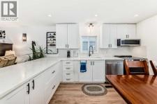 OPEN HOUSE Sunday, February 1 - 1:00 PM to 3:00 PM Welcome to this cute, professionally renovated mobile home in Watergrove mobile home park (45+ community). This home was taken down to the studs just two years ago and redone with drywall, knockdown ceiling, pot lights and vinyl plank flooring. A large primary bedroom with a huge closet, a good size second bedroom with a desk nook, and a 4 pce renovated bathroom are at the far end of the home. The kitchen has new shaker style cabinets, quartz countertop with waterfall edge, kitchen nook with decorative wall paneling, kitchen island, stainless appliances and a large window that brings in lots of light. The spacious living room has decorative wall panels that add modern style to the home. The bathroom was also updated with new bathtub, vanity and fixtures. Double pane vinyl windows were installed in 2018, new roof 2019, new siding 2023, new exterior doors 2023 and new hot water tank with leak monitor 2025. The backyard is fenced and has a powered shed for extra storage. This home is in a quiet cul de sac location just a short walk to the clubhouse. The amenity rich community includes an outdoor pool for summer annd the clubhouse features small gym, games room, lending library, dry sauna and indoor hot tub. Conveniently located to shopping at Crowfoot Crossing and the Crowfoot LRT station. Watergrove is a well managed 45+ community. Lot fee is $845/month and includes water, sewer, waste and recycling. Pet restrictions are 2 pets per home; dogs must be less than 15 inches at the shoulder when fully grown. (id:6769)