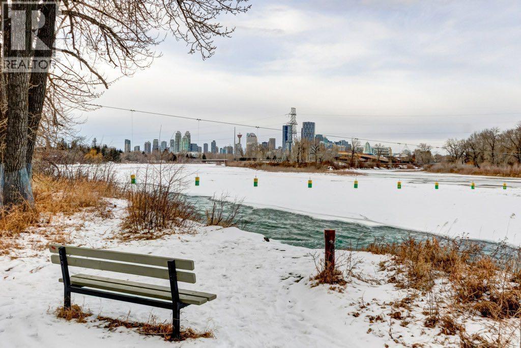 A RARE and highly sought-after setting, backing directly onto the Bow River and pathway in one of the best locations in Inglewood. This beautifully upgraded townhouse offers the perfect blend of comfort, style, and connection to nature. Your new home features a thoughtfully updated kitchen with quartz countertops, modern backsplash, and stainless steel appliances, complemented by vaulted ceilings, tile flooring, and warm maple hardwood. The main level is designed for everyday living and easy entertaining, with your kitchen and dining area opening onto the deck and yard where mature trees and the Bow River create a peaceful, private backdrop. Upstairs, unwind in the inviting family room with a cozy gas fireplace, powder room, and a southwest-facing sundeck - perfect for soaking up the afternoon and evening sun. The top floor offers a desirable double primary bedroom layout, with both bedrooms featuring walk-in closets and private 3-piece ensuite bathrooms. One bedroom includes a built-in Murphy bed - ideal for hosting guests or easily removed to enjoy a full second bedroom. This level also includes a versatile den, perfect as a home office, reading nook, yoga studio, or whatever your heart desires. The fully finished basement adds even more flexibility, ideal for an art studio, home gym, or recreation space. Additional upgrades include air conditioning, a newer furnace, a newer hot water tank, and an epoxy-coated garage floor, providing year-round comfort and peace of mind. All of this is set in desirable Inglewood, just steps from the Bow River pathway and moments from vibrant restaurants, shopping, coffee shops, minutes to downtown, and with quick access to Deerfoot Trail and the airport. (id:6769)