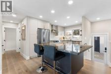 Welcome to 9936 Maplecreek Drive SE, a beautifully reimagined elevated bungalow nestled in the heart of the highly coveted Maple Ridge community. Showcasing a striking modern mid-century aesthetic, exceptional craftsmanship, and SMART home living, this residence offers a seamless blend of timeless design and contemporary luxury. With 1,115 sq. ft. of thoughtfully designed living space above grade and an additional 900 sq. ft. of fully developed basement, the home features 4 bedrooms and 3 bathrooms—perfectly suited for families, professionals, and those who love to entertain.The exterior has been meticulously transformed with refreshed stucco, sleek black windows, refined architectural detailing, and elegant Glowstone front lighting. Professionally landscaped grounds showcase exposed aggregate concrete steps, a wraparound patio, and a custom-built pergola with ambient string lighting—creating inviting outdoor spaces ideal for both intimate evenings and larger gatherings. Elevated from the street, the home enjoys enhanced privacy and striking curb appeal.Inside, the open-concept main floor is bathed in natural light and enhanced by custom built-ins, powered blinds throughout, and a Bluetooth-enabled smart gas fireplace that anchors the living area. The designer kitchen is both stunning and functional, featuring two-toned grey cabinetry with gold accents, Italian marble countertops, under-cabinet and toe-kick lighting, and a spacious island with seating for three. An under-mounted sink overlooks the backyard, while newer appliances include an induction cooktop with air-fry capable oven and an upgraded refrigerator.The primary suite offers a serene retreat, complete with his and hers custom walk-in closets and a spa-inspired 4-piece ensuite with dual vanities, marble countertops, and a custom glass-enclosed shower. One additional bedroom and a beautifully appointed 4-piece bathroom complete the main level.The fully finished basement provides versatile living an d entertaining space, featuring a media area, games space, and wet bar, along with two additional bedrooms, a 4-piece bathroom, epoxy-coated laundry flooring, a basement subfloor system, sump pump, and exterior French drain. WiFi-enabled washer and dryer are included.The refinished 25’x 23' double garage accommodates larger vehicles and storage needs and includes a WiFi-enabled garage door opener and EV charger. Additional upgrades include new electrical, HVAC, Carrier air conditioning, a smart Ecobee Premium thermostat with secondary sensor, water softener (excluding kitchen cold and exterior taps), upgraded attic insulation (previously R50), electronic programmable deadbolts, and a 7.29 kW solar panel system delivering enhanced energy efficiency and reduced utility costs.Impeccably finished and truly move-in ready, this exceptional home is steps from top-rated schools, parks, shopping, and everyday amenities—offering a rare opportunity to own in one of Calgary’s most desirable communities. (id:6769)