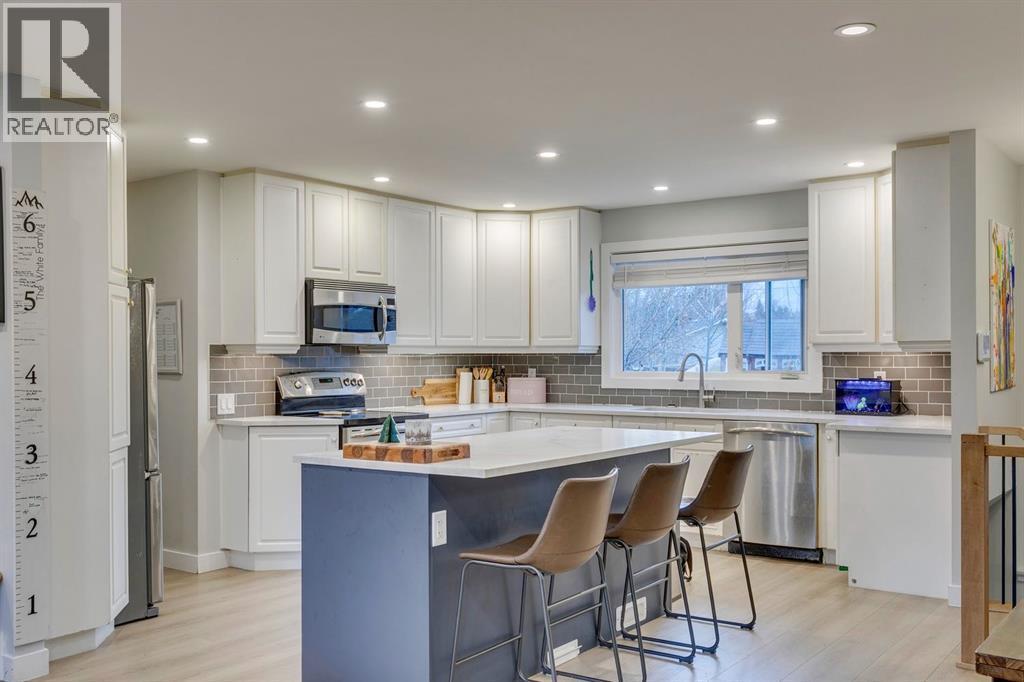 Welcome to this beautifully updated 1180 sq ft bungalow, offering stylish comfort and a bright, open-concept layout. The spacious living room features large windows that flood the space with natural light, creating the perfect spot for everyday living and entertaining.You’ll love the modern kitchen complete with a large island, ample cabinetry, and an adjoining dining area that’s ideal for family meals. With 5 bedrooms—3 on the main level and 2 downstairs—there’s plenty of room for growing families, guests, or a home office. The home also offers 2 full bathrooms and thoughtfully designed feature walls that bring character and warmth to the main floor.The fully finished basement provides even more versatile living space. Outside, enjoy a large backyard with room to relax or play, plus a double detached garage for parking and storage.This is the perfect blend of updates, space, and natural light—ready to move in and enjoy! (id:6769)