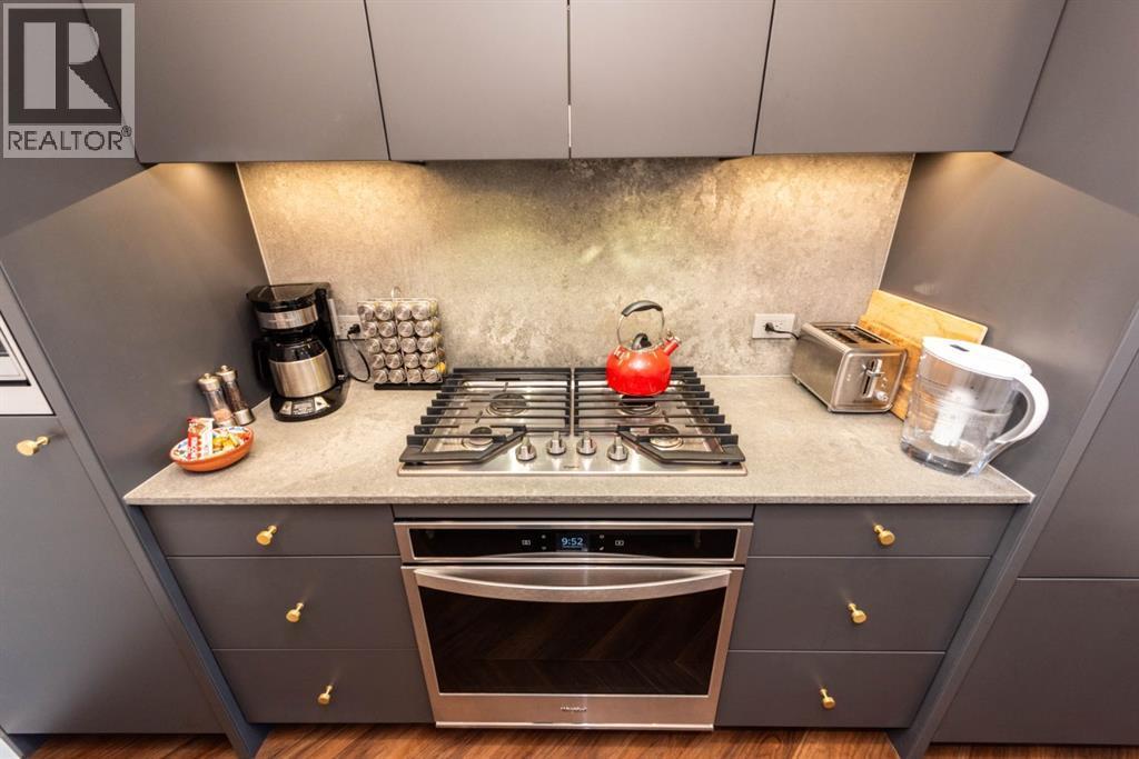 Experience elevated living in this Truman-built, concrete construction condo in sought-after West Springs. This 1-bedroom residence offers peace and quiet with superior soundproofing, allowing you to fully enjoy the spacious 547 sq ft open-concept design.Floor-to-ceiling glass in the living room, 9’ ceilings, and LED pot lighting create a bright, modern atmosphere. The chef-inspired kitchen features quartz countertops, a gas cooktop, wall oven, and custom soft-close cabinetry. Retreat to the bedroom with its expansive walk-in closet, and step out onto your private balcony with sweeping views.With central air conditioning, high-end finishes, and a location just minutes from shopping, dining, and transit, this home blends comfort, style, and convenience. Perfect for professionals, downsizers, or investors seeking long-term value. (id:6769)